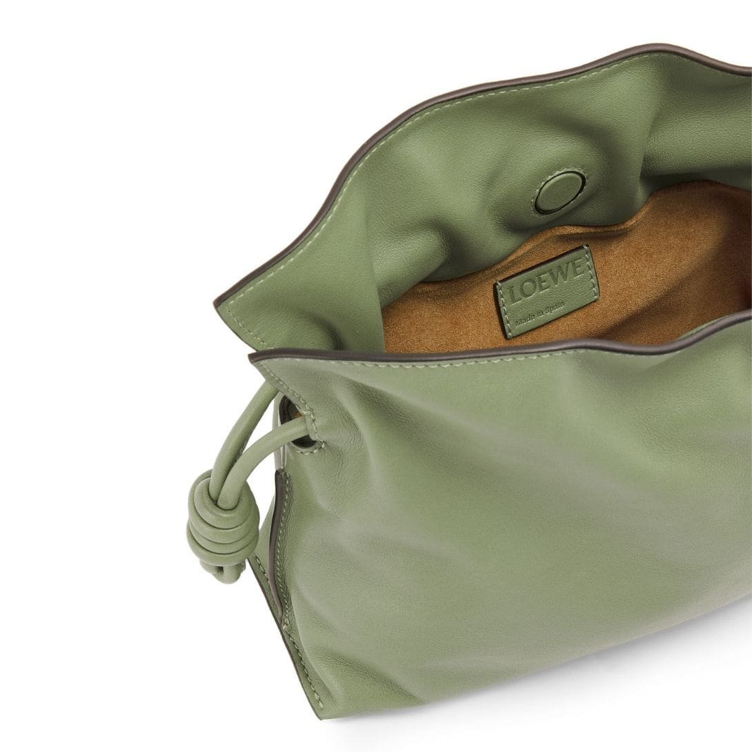 In addition to its practical design, the Mini Flamenco Clutch Bag features LOEWE’s signature knot detailing, adding a touch of uniqueness and flair to the overall aesthetic. This subtle yet distinctive element sets the bag apart, highlighting the brand’s commitment to craftsmanship and innovative design.