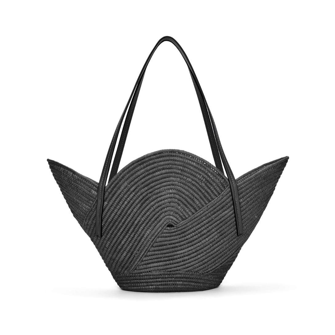 LOEWE PETAL BASKET BAG IN RAFFIA AND CALFSKIN