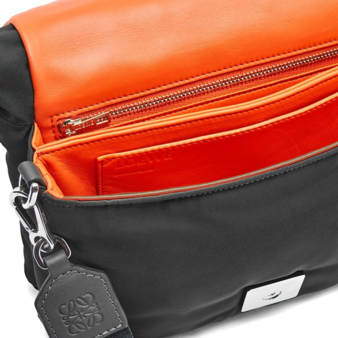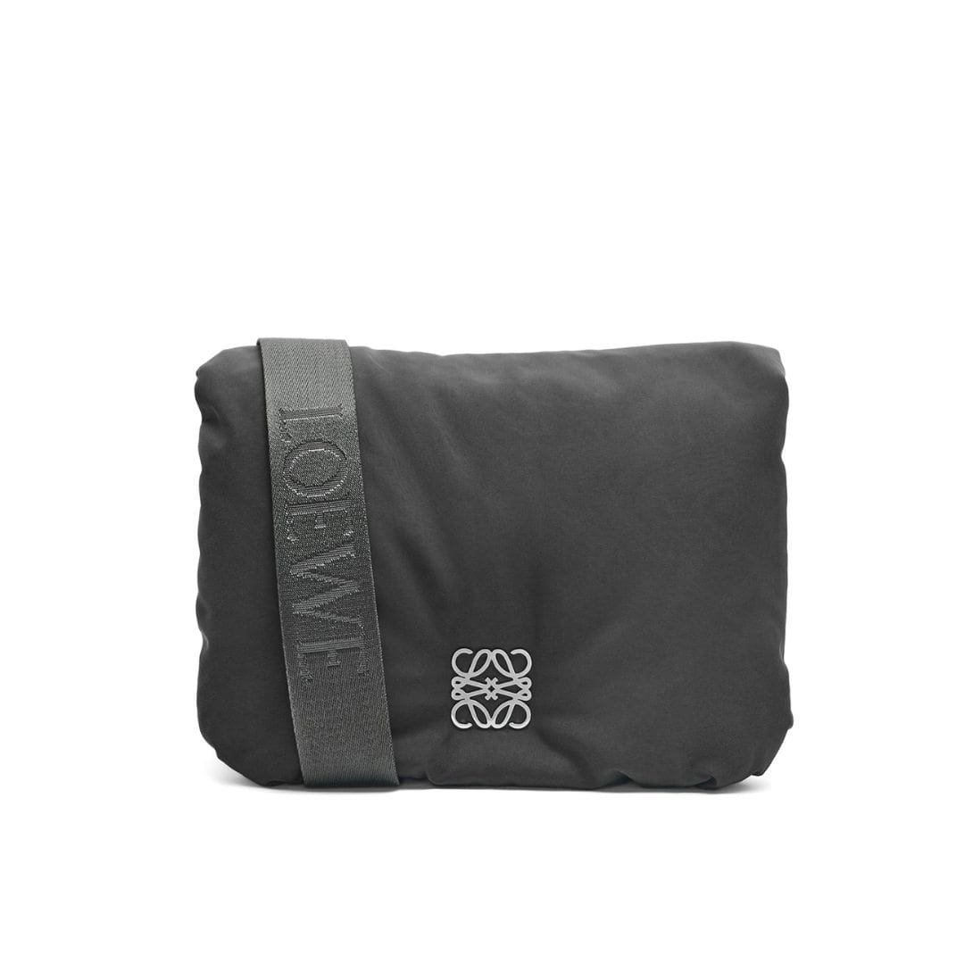 Introducing the LOEWE Puffer Goya Bag In Nylon, an exquisite blend of contemporary style and practical functionality. Crafted in sleek black nylon, this bag exudes modern sophistication, making it a versatile addition to any wardrobe. The palladium metallic accents provide a striking contrast to the black nylon, adding a touch of understated luxury to the design.