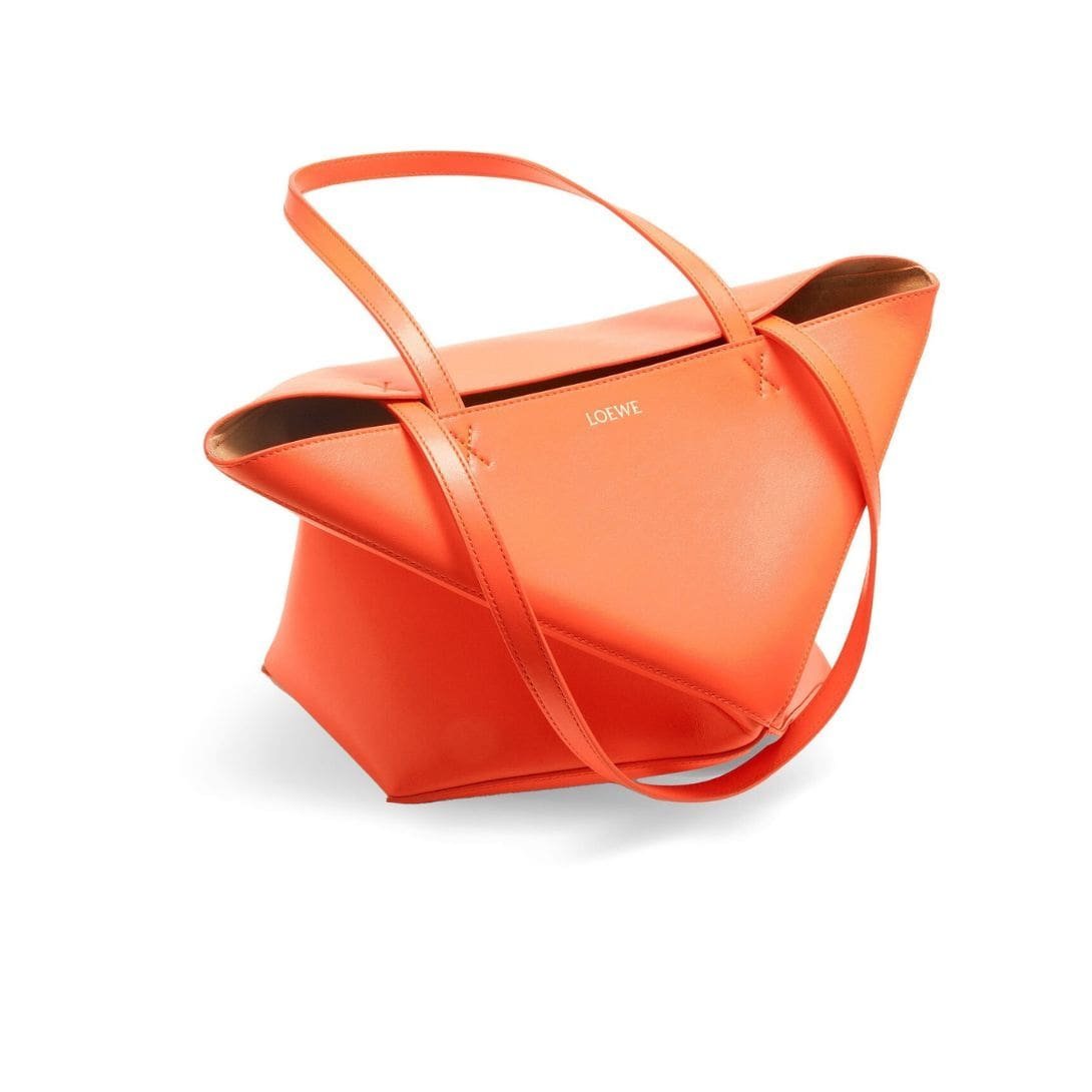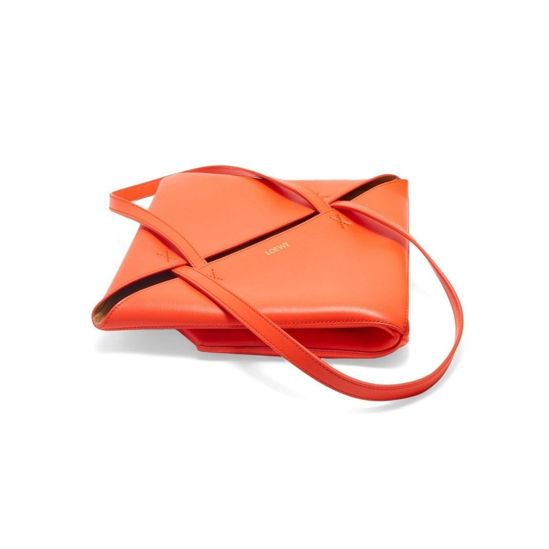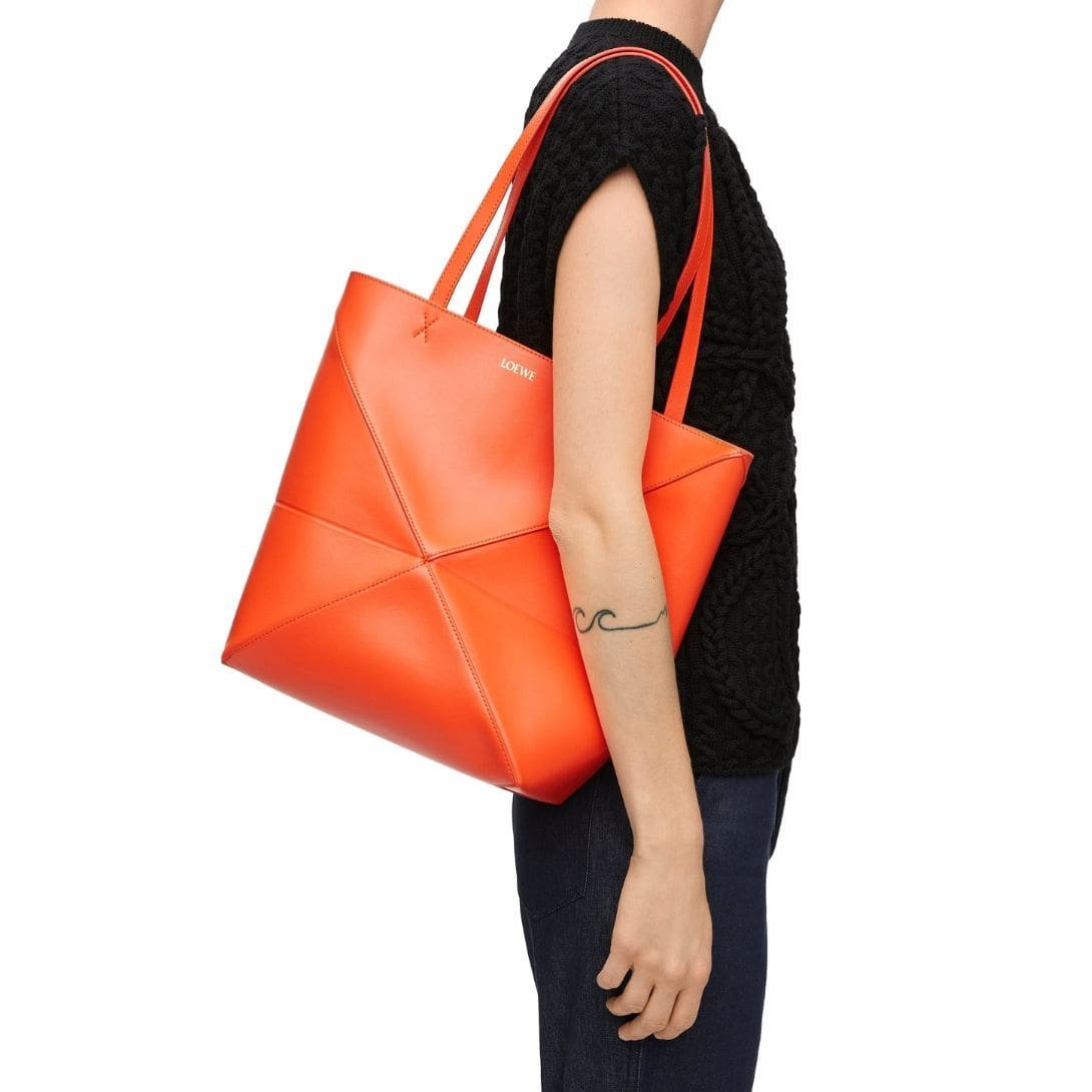 Indulge in luxury with the exquisite craftsmanship of the LOEWE Puzzle Fold Tote Bag In Shiny Calfskin, crafted from polished calf leather. This sophisticated accessory is both timeless and versatile, embodying the epitome of elegance.