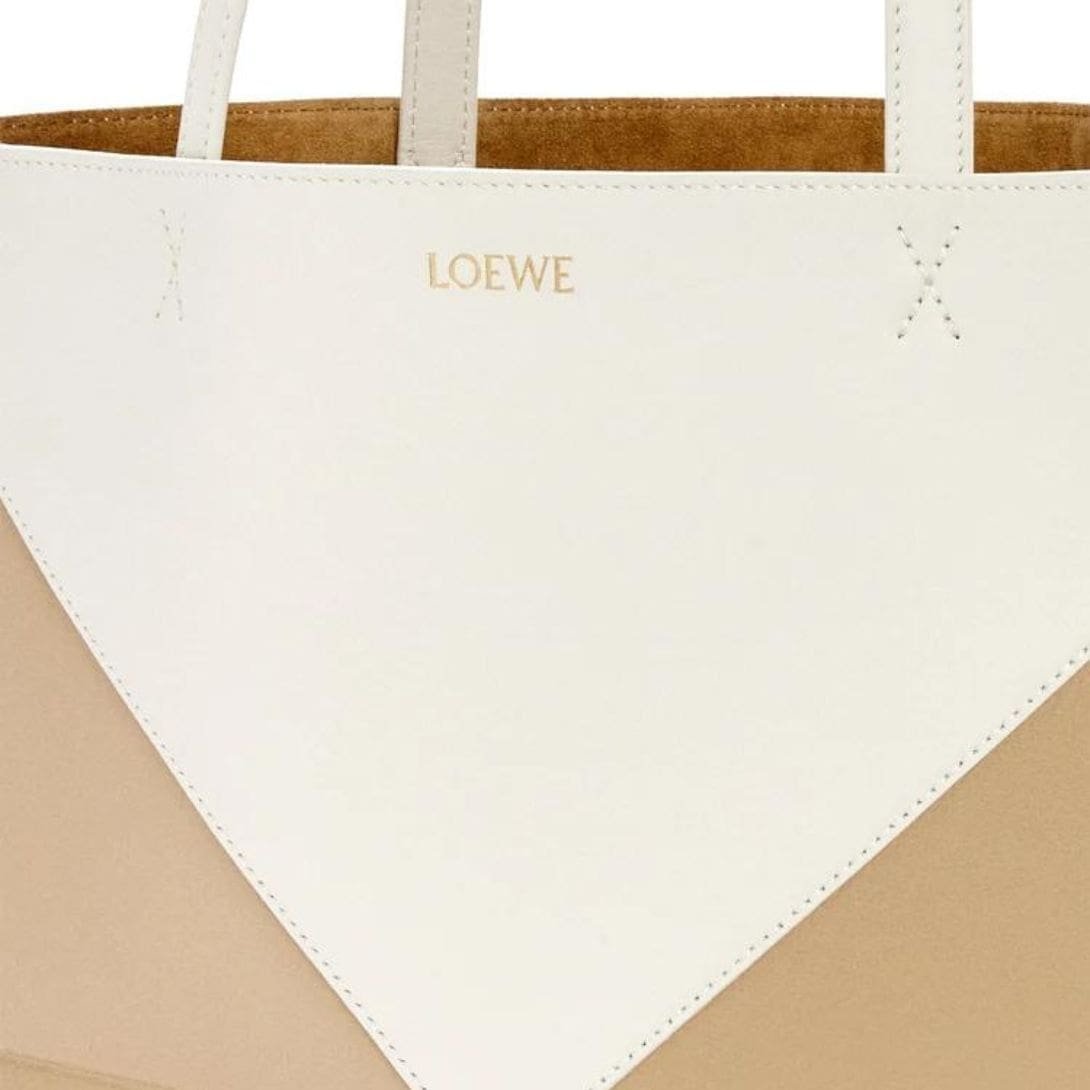 Indulge in luxury with the exquisite craftsmanship of the LOEWE Puzzle Fold Tote Bag In Shiny Calfskin, crafted from polished calf leather. This sophisticated accessory is both timeless and versatile, embodying the epitome of elegance.
