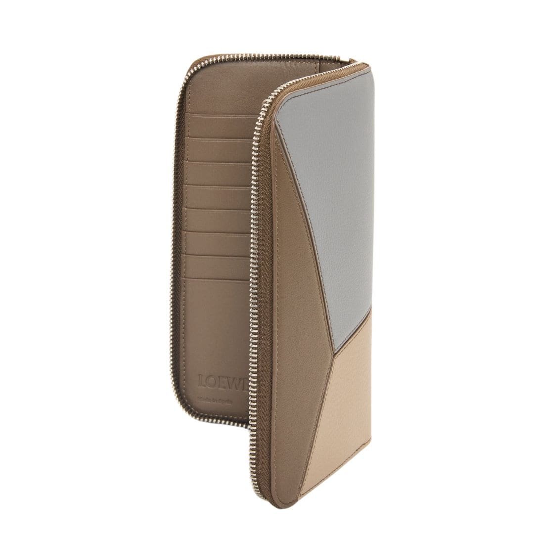 Loewe’s Puzzle open wallet with zip in classic calfskin leather is not only practical but also a statement of luxury and utility. It embodies the brand’s dedication to timeless craftsmanship and contemporary design, offering functionality without compromising on aesthetic appeal. Perfect for individuals who appreciate fine craftsmanship and refined style, this wallet elevates daily essentials with elegance and sophistication.