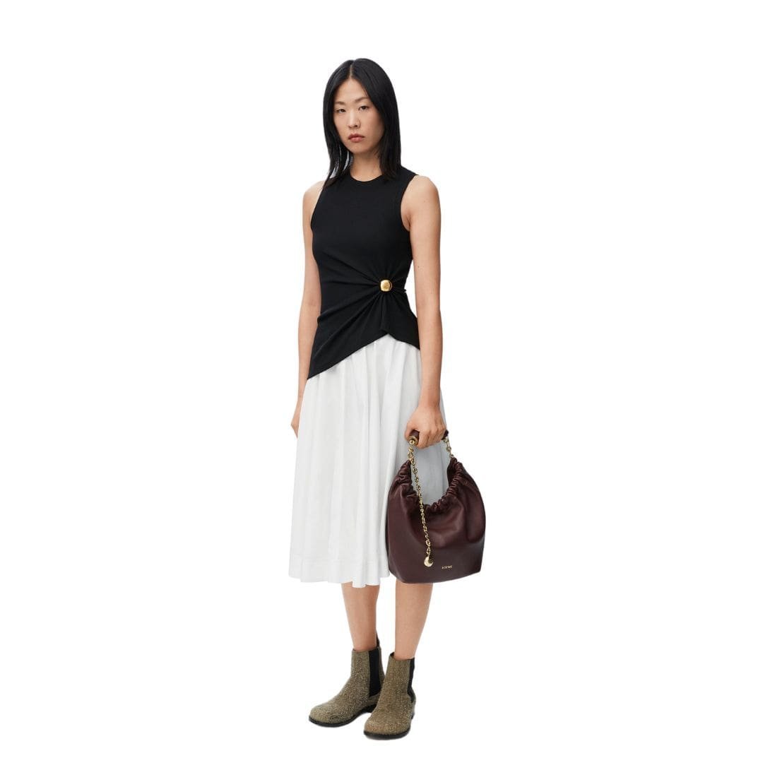 In summary, Loewe’s cotton skirt combines practicality with timeless style, making it a wardrobe staple for those who appreciate comfort and versatility. With its high-quality cotton construction, substantial weight, and understated design, this skirt offers a refined yet effortless option for everyday wear and special occasions alike.