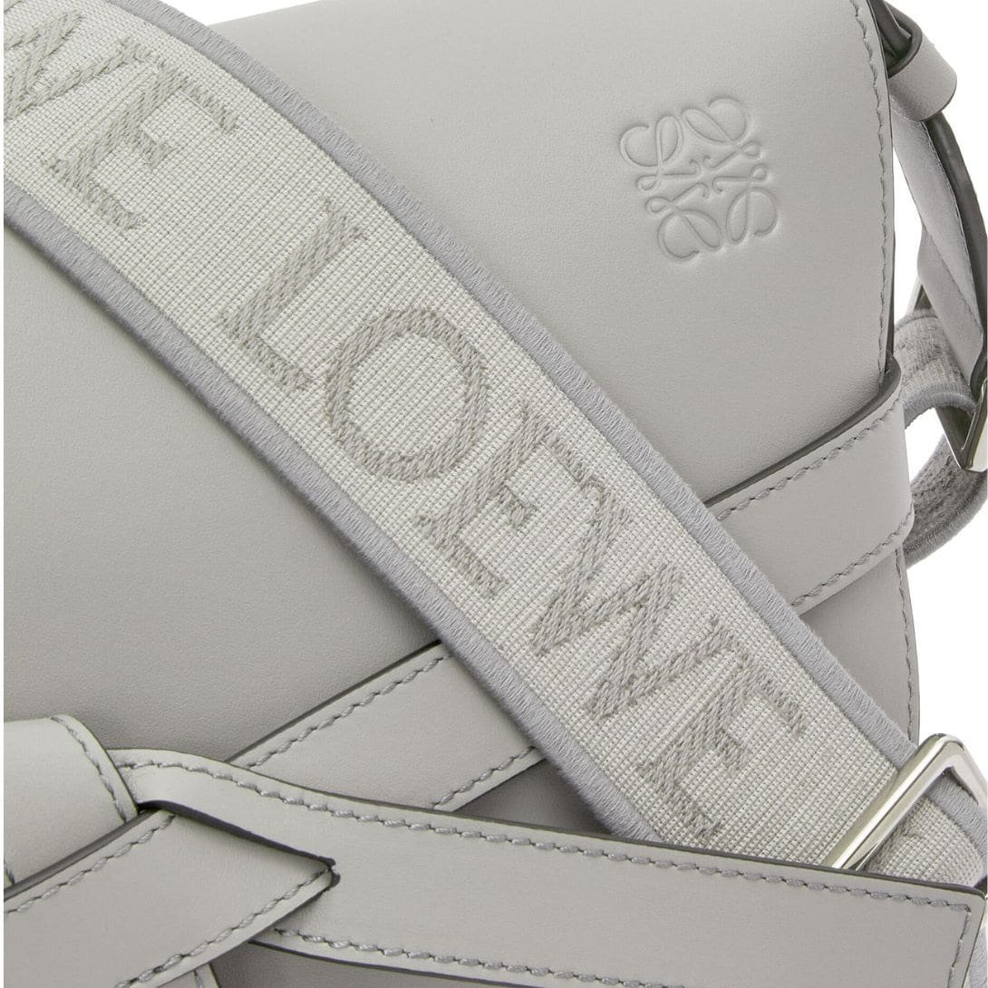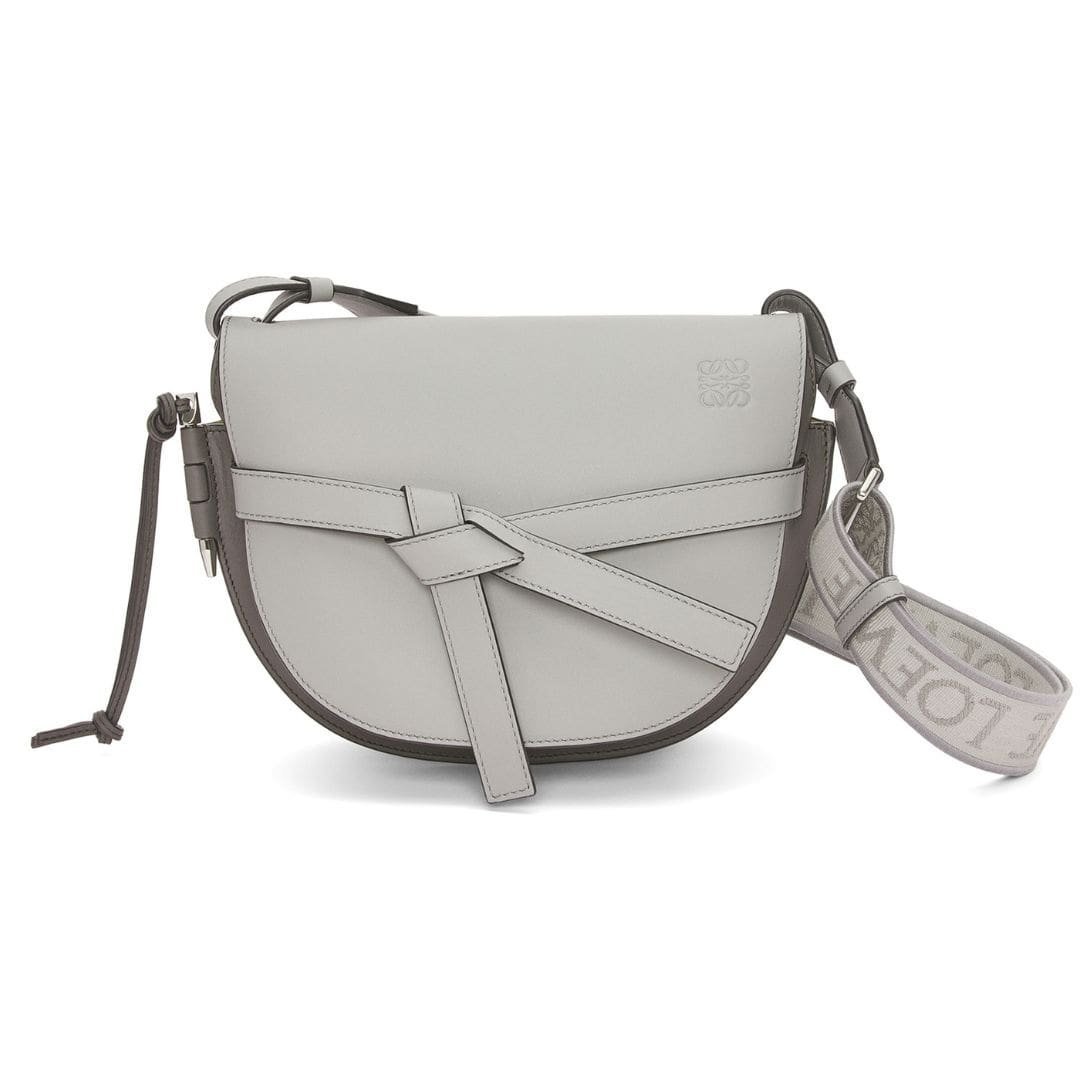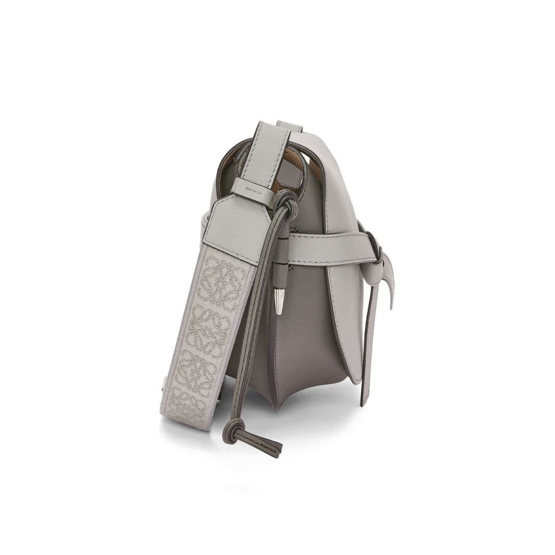 In summary, the LOEWE Gate Bag in Pearl Gray and Dark Gray is a stylish and practical accessory. With its premium materials, adjustable strap, and spacious interior, it offers both functionality and elegance for the modern individual.