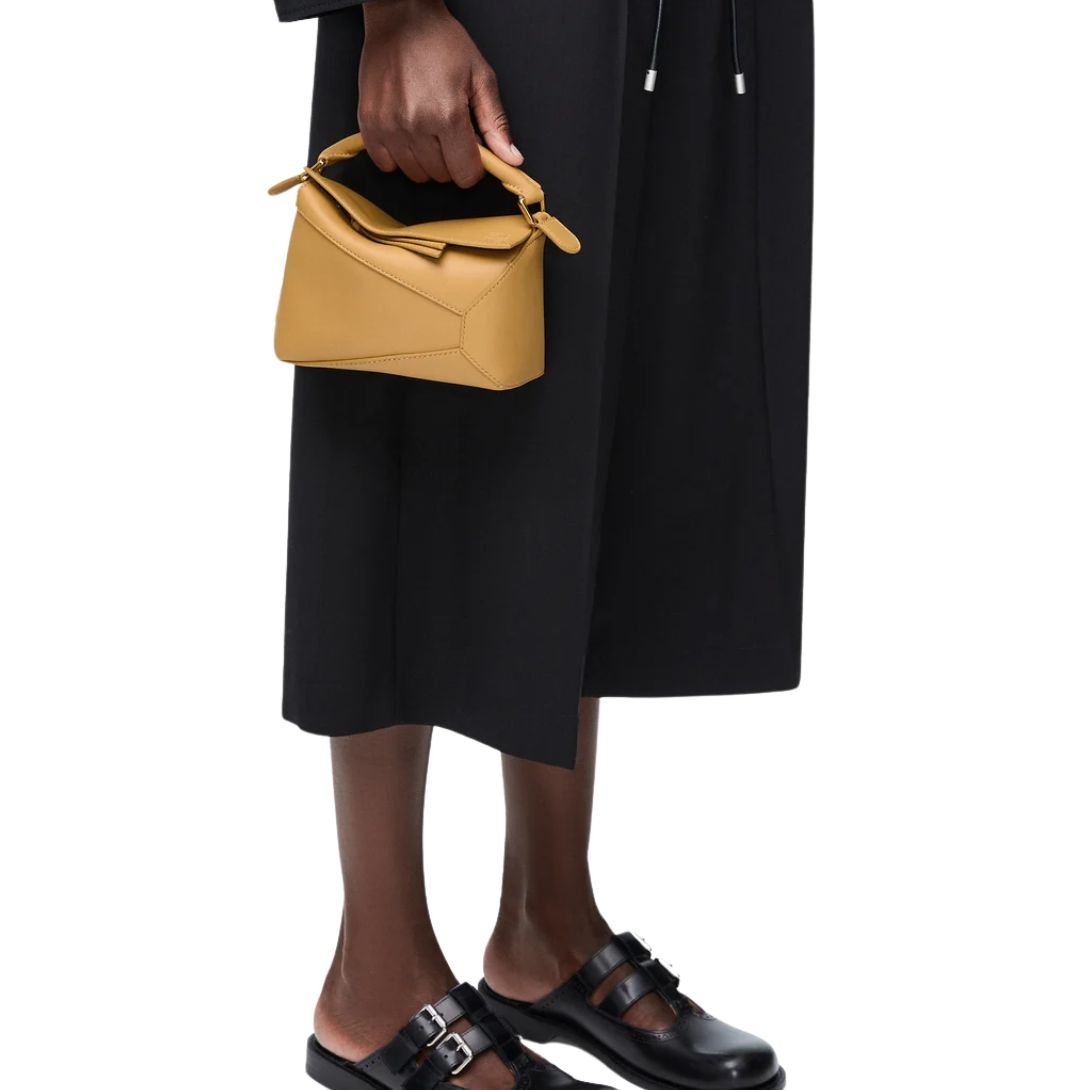 A modern reimagination of an icon, the Puzzle Edge mini bag evolves Jonathan Anderson’s signature cuboid silhouette with overlapping geometric panels and sharp single-stitch lines. This compact version, crafted from smooth classic calfskin, captures the architectural essence of the original in a sleek, minimalist form.