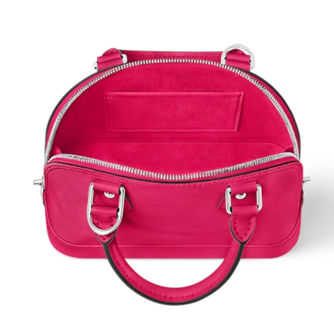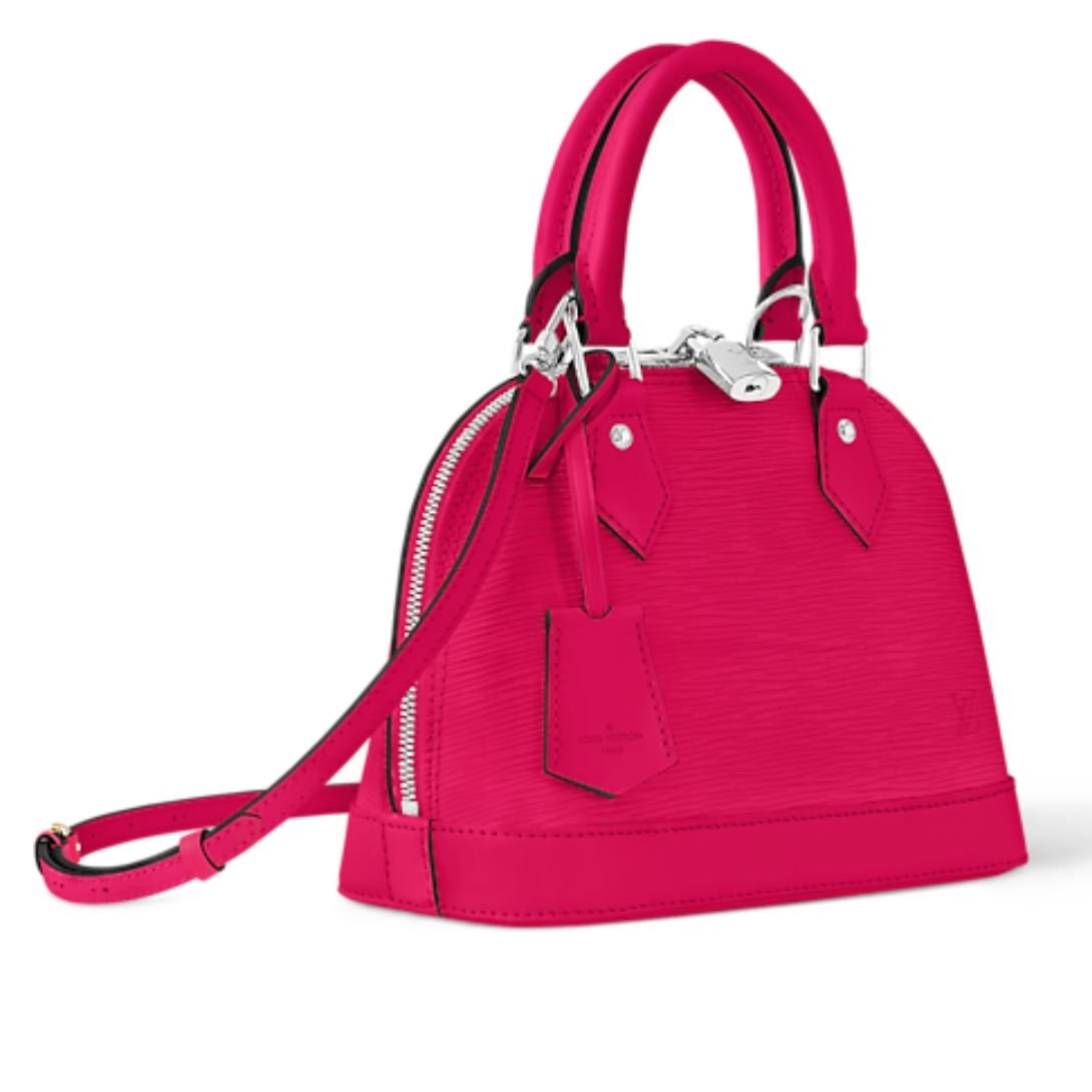 Crafted from grained Epi leather, the Alma BB features smooth cowhide-leather trim and luminous silver-color hardware. Hallmark Louis Vuitton accents—like the padlock, key bell, and structured Toron handles—offer an unmistakable nod to the Maison’s storied craftsmanship.