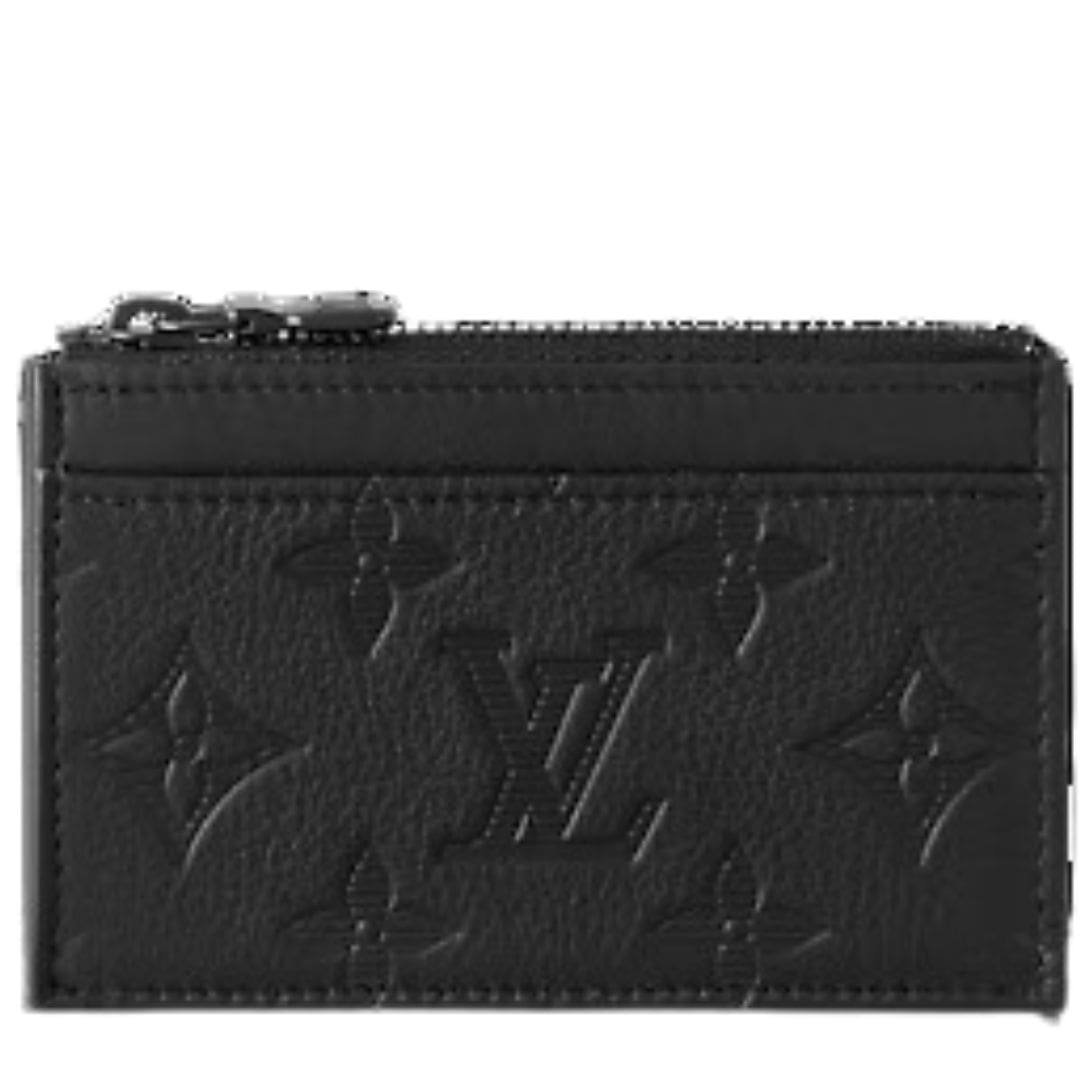 Measuring 4.4 x 3 x 0.4 inches, the LOUIS VUITTON COIN CARD HOLDER is perfectly sized for convenience without sacrificing style. It includes a zipped coin compartment, ideal for securely storing your loose change, and two front card slots for your essential cards. The discreet design is completed with black-color hardware, including a sleek black zipper that enhances its understated elegance.