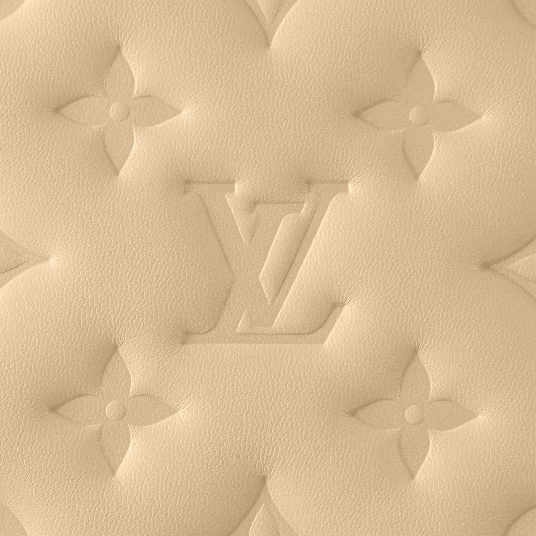 Introducing the LOUIS VUITTON COUSSIN MM handbag, a luxurious blend of sophistication and modernity. Crafted from Monogram-embossed lambskin in a timeless beige hue, this exquisite bag exudes understated elegance. The soft, puffy silhouette is complemented by a pale-gold-color chain, adding a touch of glamour to its versatile design.