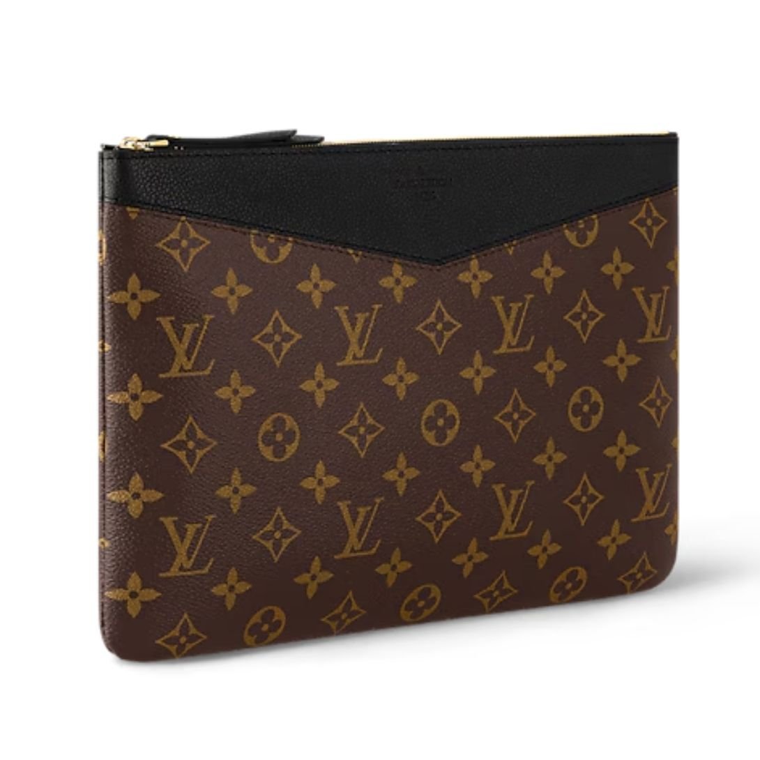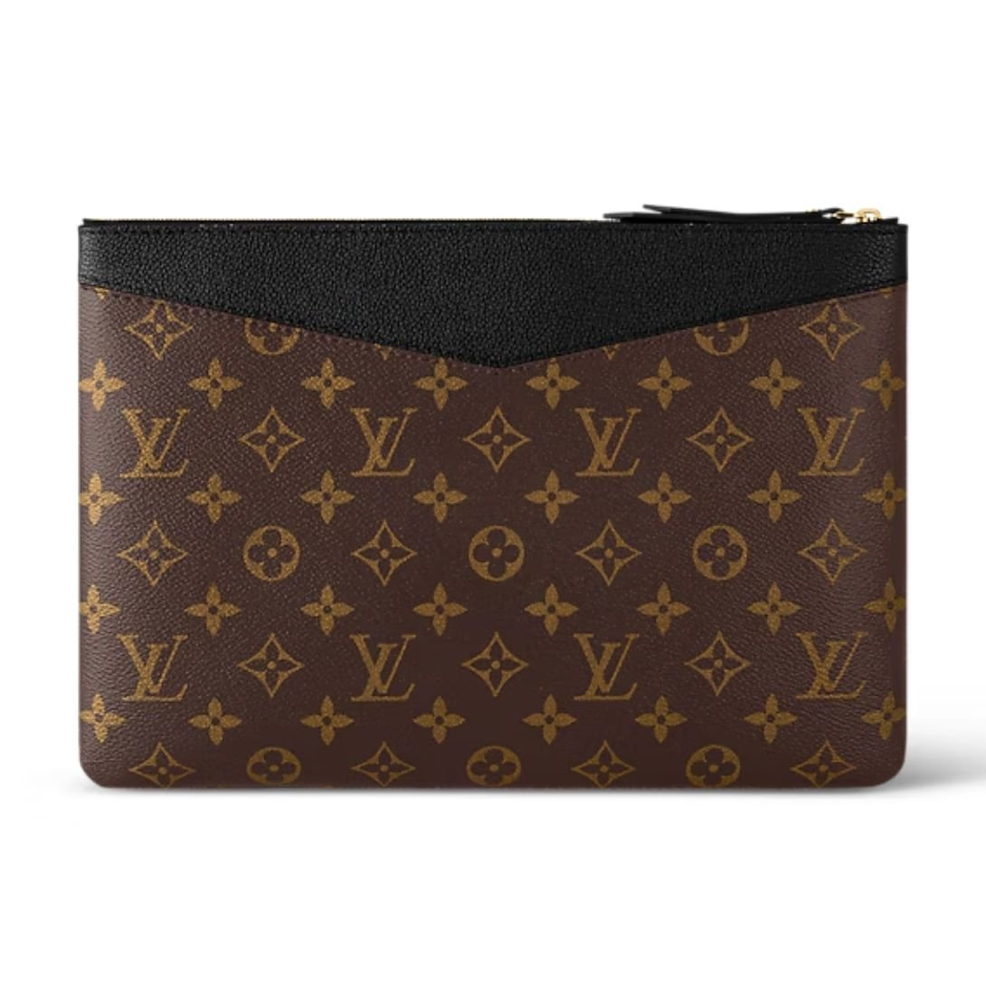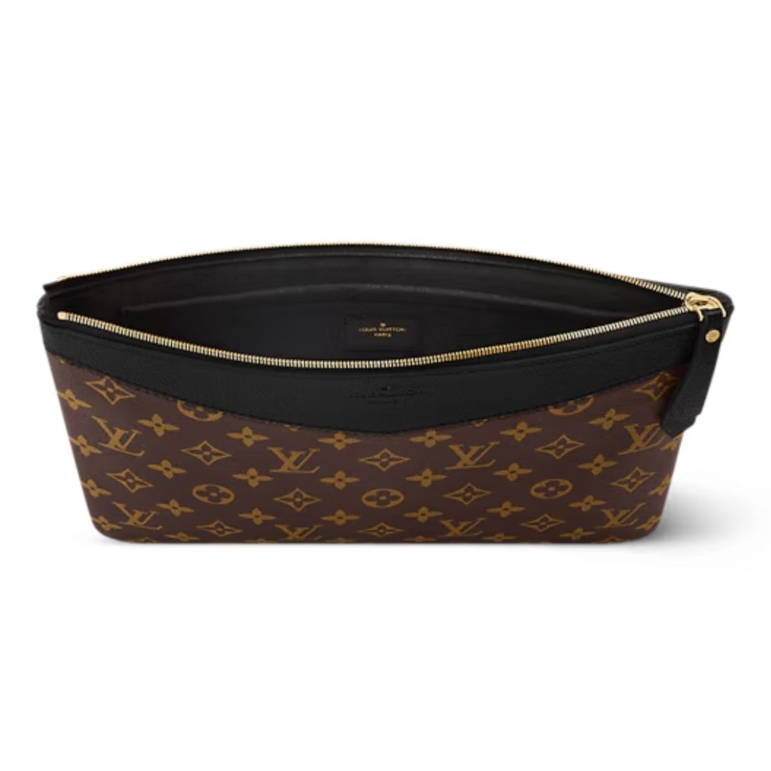 The Daily Pouch combines the signature Monogram canvas with subtly grained cowhide leather, creating a sophisticated and modern accessory. Its spacious design offers ample room for all your everyday essentials, making it a versatile piece for both casual and formal occasions.