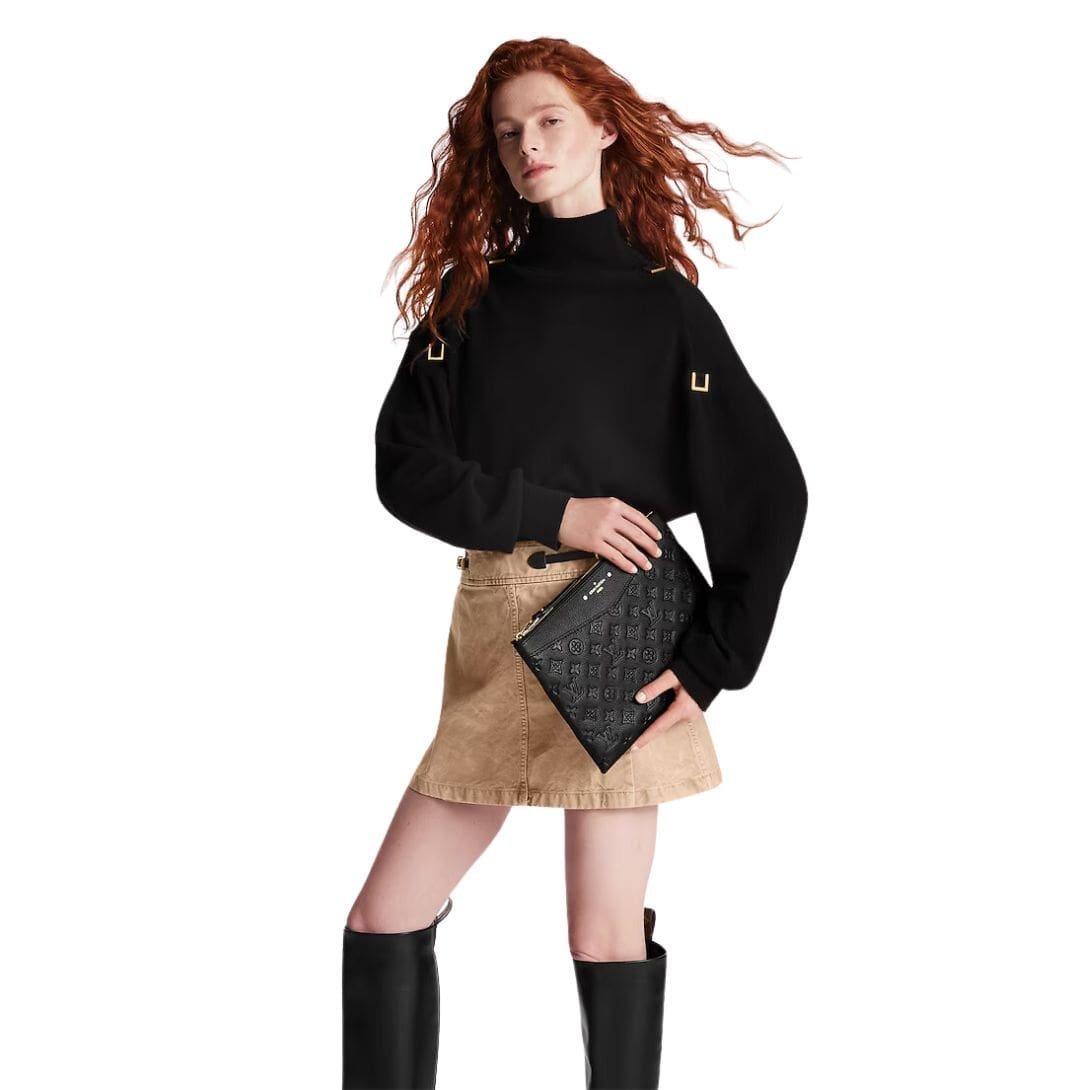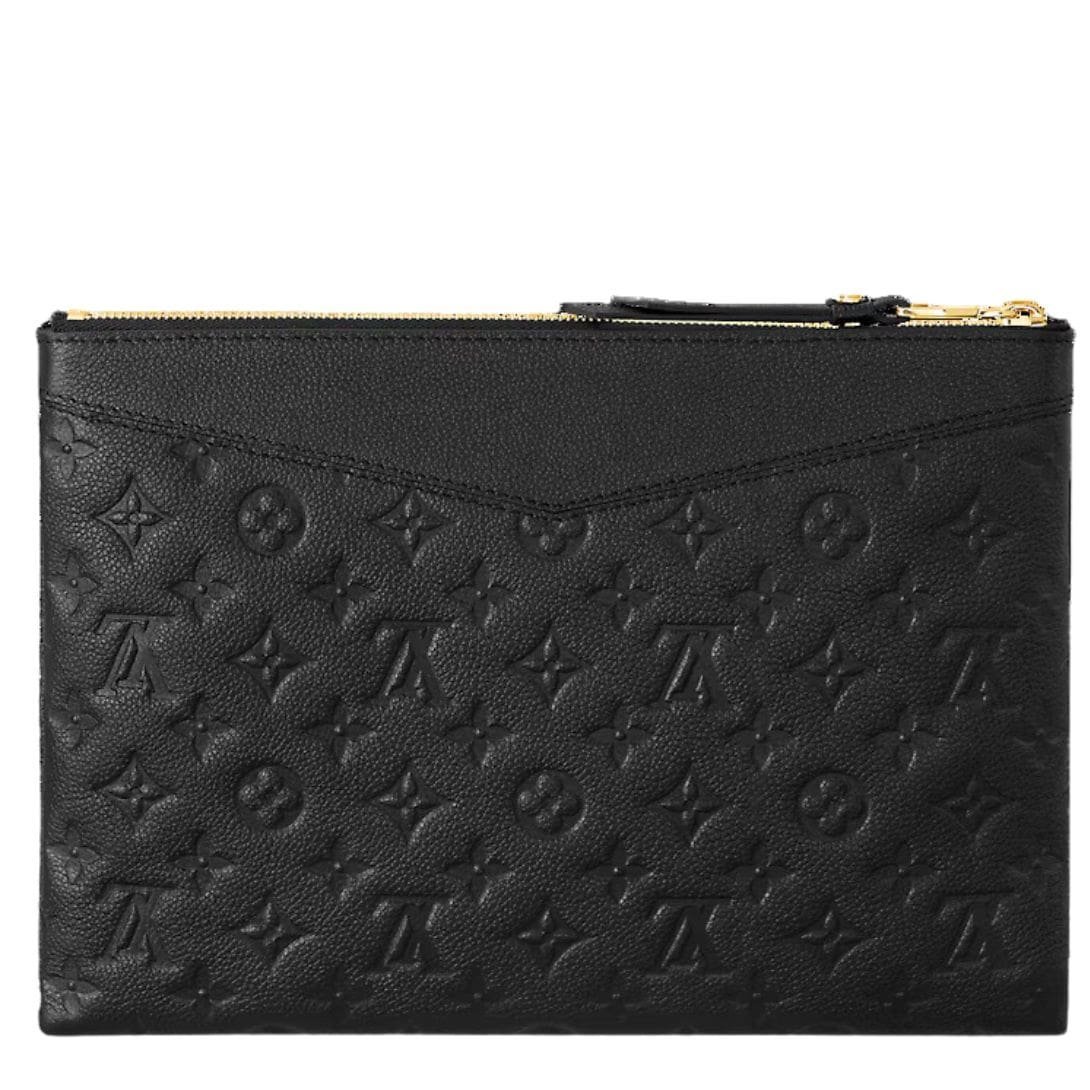 Indulge in the epitome of luxury with the LOUIS VUITTON DAILY POUCH , a timeless accessory crafted from exquisite Monogram Empreinte leather. This sleek pouch features Louis Vuitton’s iconic Monogram pattern embossed on supple-grained cowhide leather in classic black Noir, exuding sophistication at every glance.