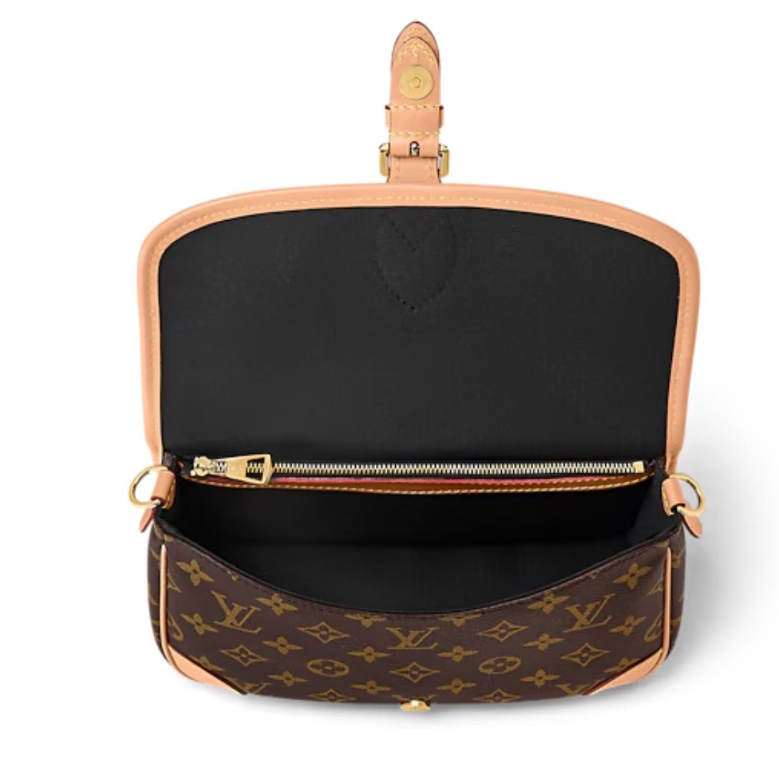 The Diane satchel in Monogram canvas is a refined reinterpretation of a beloved Louis Vuitton silhouette from the 1990s. This updated version celebrates its heritage with retro-inspired details like aged natural leather corners and an archival-style buckle, while offering contemporary practicality for everyday life.
