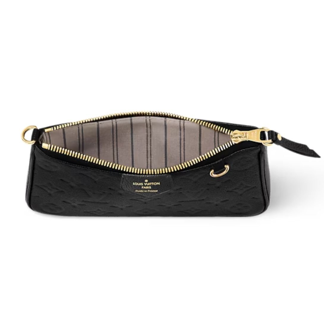 Introduced for Spring 2022, the Easy Pouch On Strap in Black is a sleek, contemporary accessory crafted from Monogram Empreinte leather. The supple cowhide is embossed with the iconic Monogram pattern, giving this compact piece a subtly luxurious texture and visual appeal.