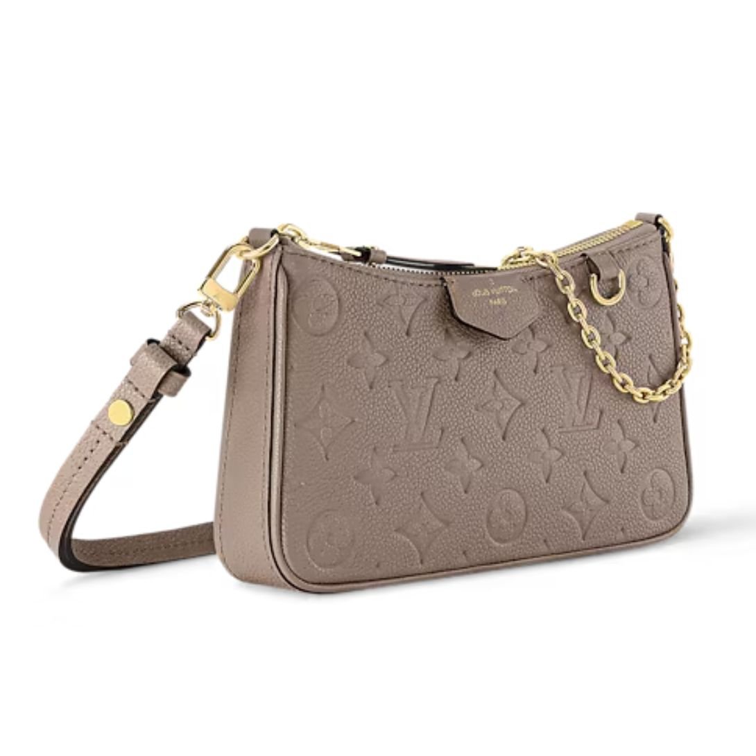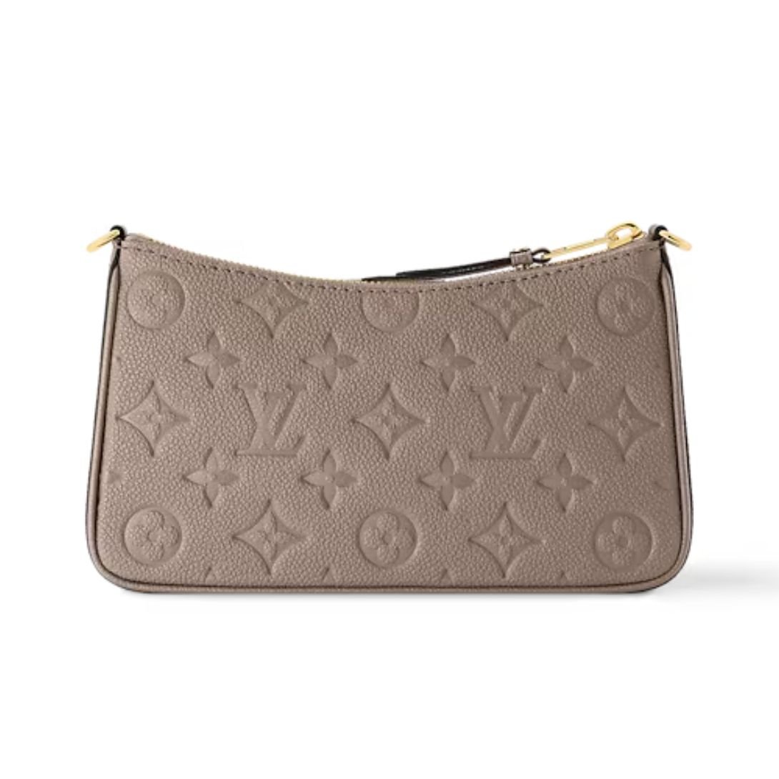 The Easy Pouch On Strap in Tourterelle Beige showcases Louis Vuitton’s iconic Monogram Empreinte leather in a soft, neutral tone. Its streamlined silhouette and embossed Monogram pattern exude subtle sophistication, making it an ideal accessory for day or evening wear.