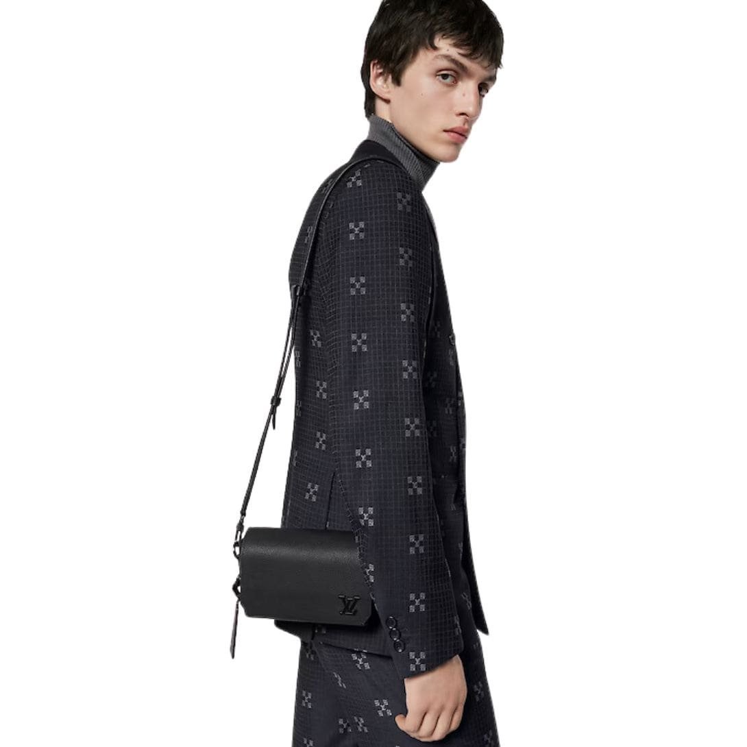 Measuring 6.8 x 4.7 x 2.8 inches, the LOUIS VUITTON FASTLINE WEARABLE WALLET is designed for both style and convenience. It offers a spacious main compartment secured by a magnetic flap closure, ensuring your essentials are safe and easily accessible. Inside, you’ll find a zipped pocket for added security and organization, while an additional back pocket provides quick access to frequently used items.