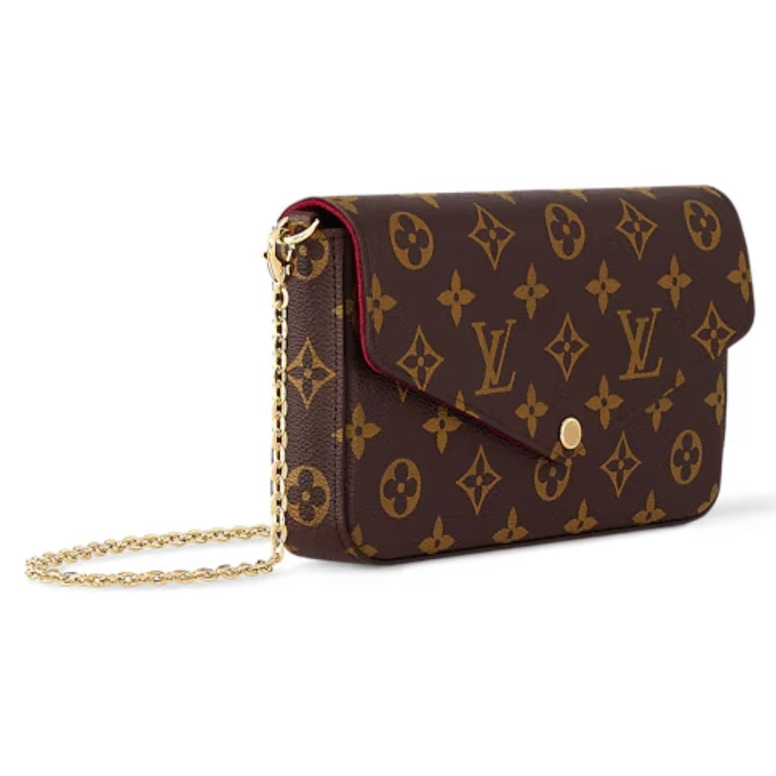 The Félicie Pochette is a stylish and adaptable flap pouch designed for those who love refined functionality. Crafted in Louis Vuitton’s iconic Monogram coated canvas and lined with luxurious fuchsia microfiber, it delivers a chic yet practical option for everyday or evening wear.