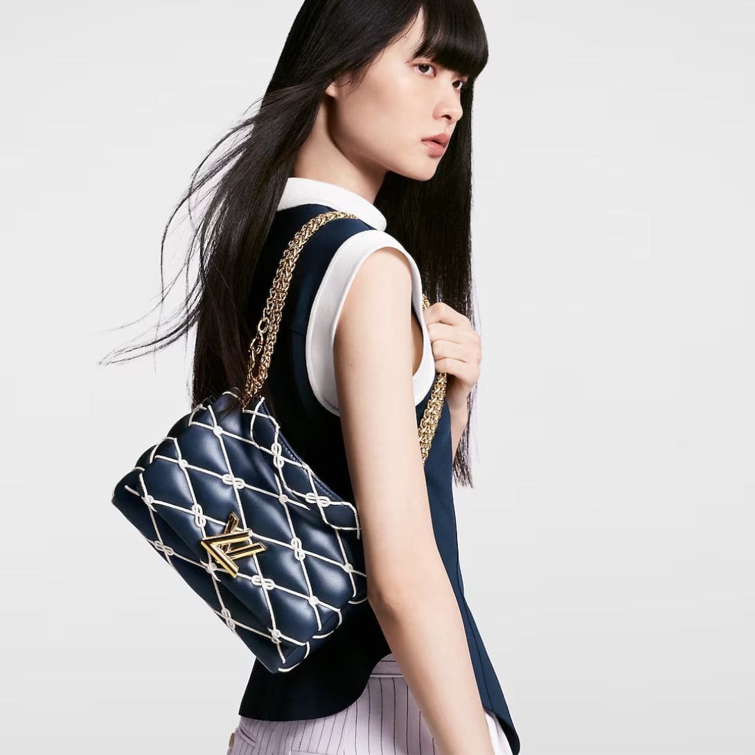 Measuring 9.1 x 6.3 x 3.9 inches (length x height x width), the handbag features lambskin and rope trim, with a cowhide-leather lining for added durability and luxury. The gold-color hardware, including the iconic LV Twist lock, adds a touch of opulence. This versatile bag offers multiple carrying options with a removable and adjustable sliding chain, as well as a removable top handle, ensuring it complements any outfit and occasion.