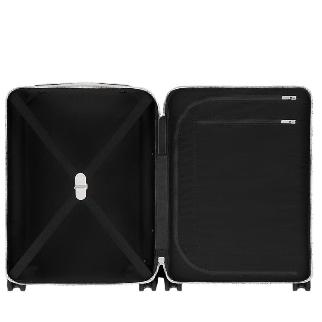 Practicality meets elegance with the LOUIS VUITTON HORIZON 55, featuring a surprisingly spacious interior complete with elastic straps and a divider to keep your belongings organized during travel. The large external cane and flat-bottomed interior enhance convenience, while the zip closure with the TSA lock system ensures peace of mind and security throughout your journey.