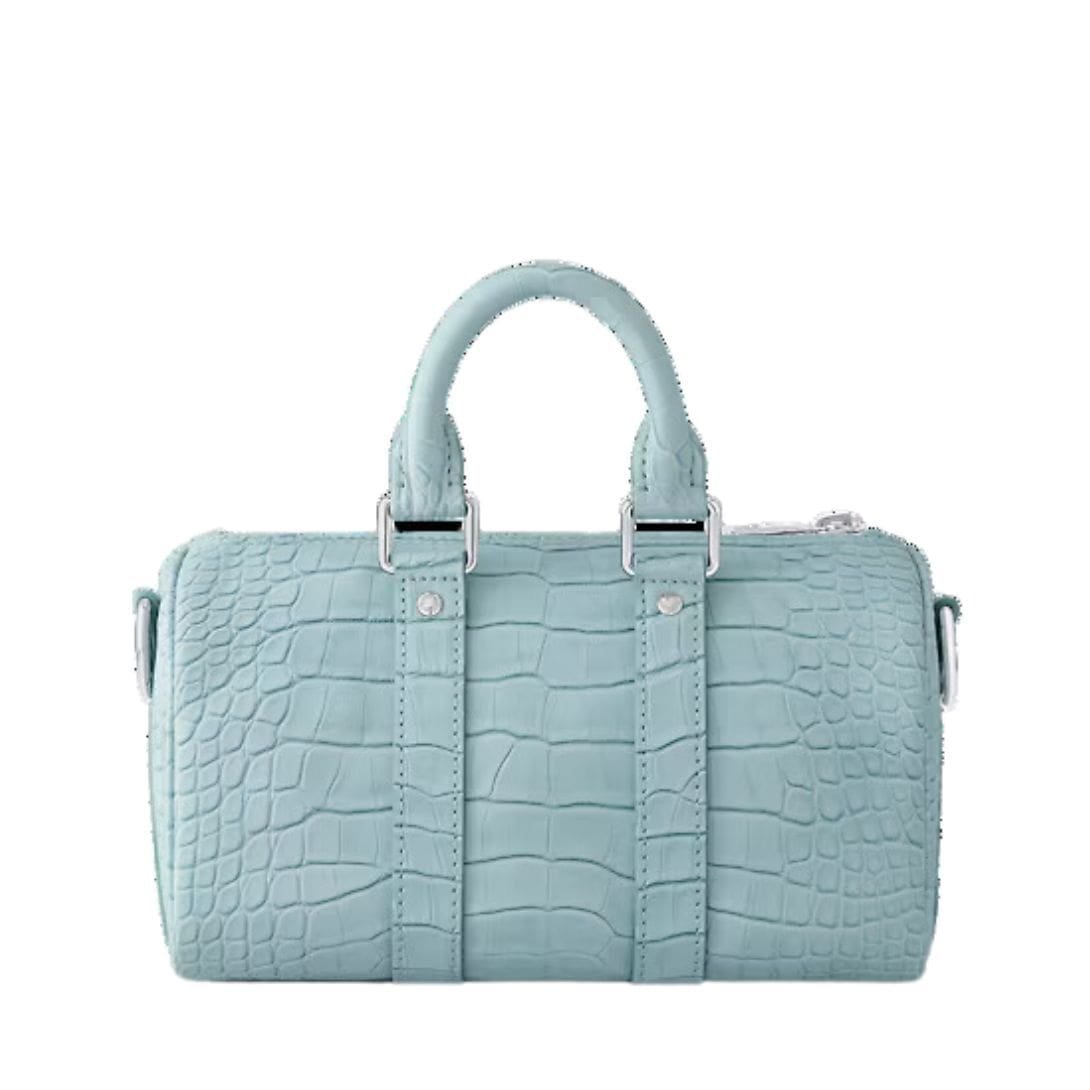 Introducing the epitome of elegance and functionality, the Sky Blue LOUIS VUITTON KEEPAL BANDOULIERE 25 for Summer 2023. Crafted from sumptuous alligator leather dyed to mimic the radiant hue of a sun-kissed sky, this exquisite piece is a testament to luxury and sophistication. Measuring 9.8 x 5.9 x 4.3 inches, its compact yet spacious design makes it the perfect companion for your summer escapades.
