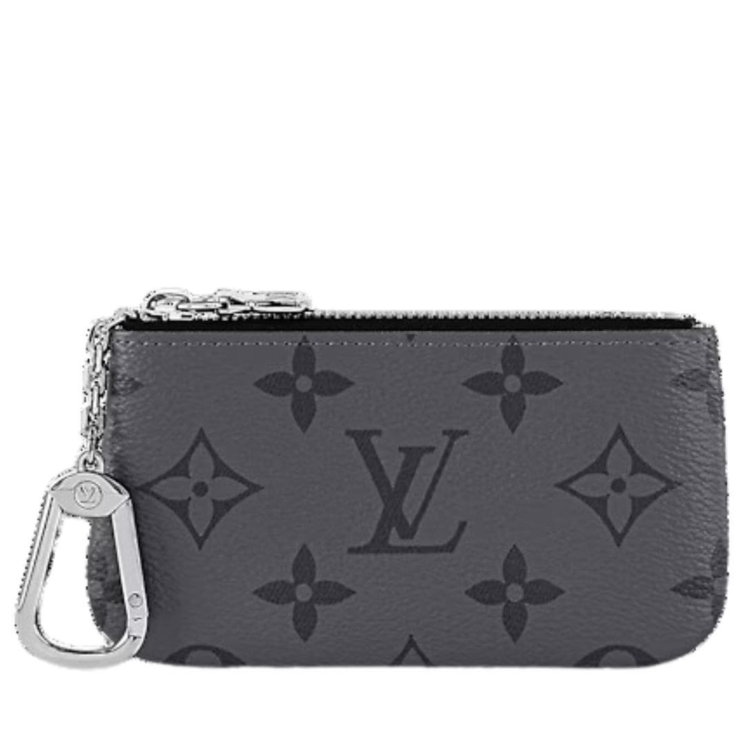 Presenting the LOUIS VUITTON KEY POUCH , a compact and practical accessory crafted for men with classic tastes, now in elegant black Aerogram leather. With dimensions of 4.7 x 2.8 x 0.6 inches, this sophisticated pouch is perfect for carrying coins, cards, and keys, fitting snugly in a pocket or clipping effortlessly to a larger bag with its handy chain and hook.