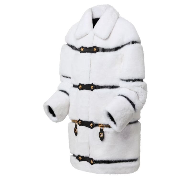 LOUIS VUITTON LEATHER STRIP WHITE MINK COAT