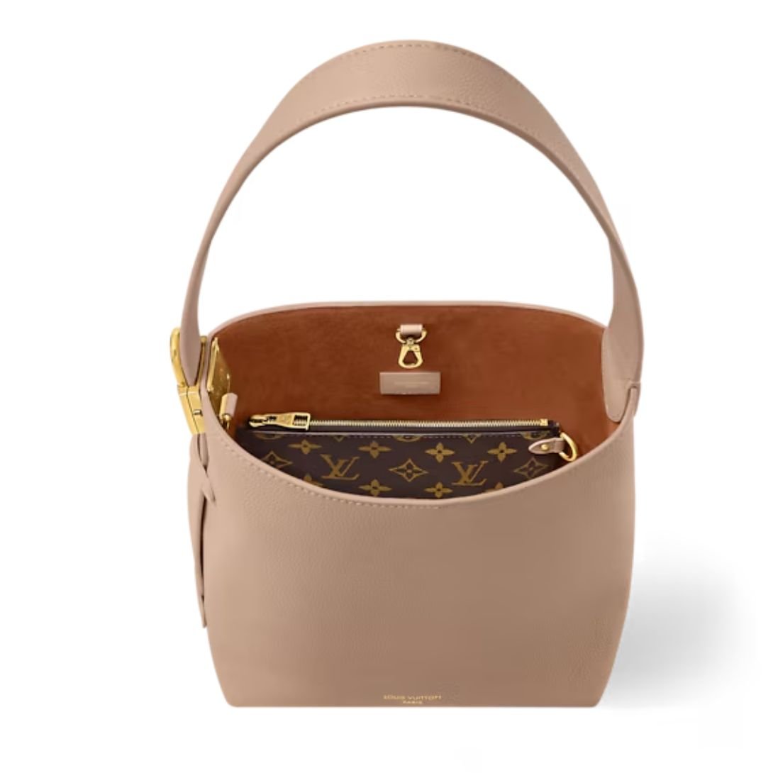 The bag features a hook closure to secure your belongings and an interior removable zipped Monogram pocket, perfect for storing smaller valuables. Its adjustable strap provides versatile wear options—carry it by hand, wear it over the shoulder, or style it cross-body.