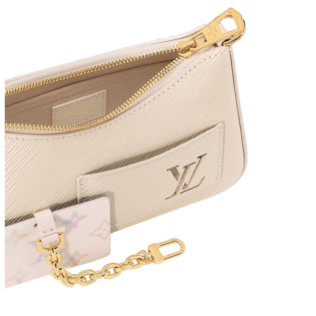 Introducing the LOUIS VUITTON MARELLINI handbag, a captivating piece from Louis Vuitton’s LV Milky Way capsule, crafted for the modern woman with a penchant for elegance. Made from the Maison’s iconic Epi leather, this handbag exudes sophistication in every detail. The refined neutral colorway of Quartz White is accentuated by gold-tone hardware, adding a touch of sparkle to its feminine allure.