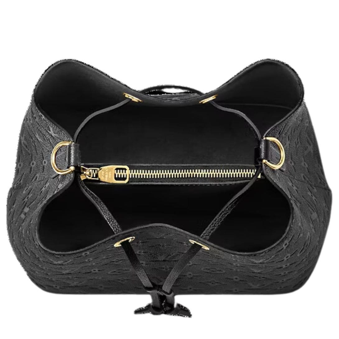 Measuring 10.2 x 10.2 x 6.9 inches (length x height x width), the LOUIS VUITTON NEONOE MM offers generous space within its two compartments, including a central zipped pocket for secure storage of your essentials. Crafted from Embossed Monogram Empreinte grained cowhide leather with cowhide-leather trim and microfiber lining, this bag is as durable as it is stylish.
