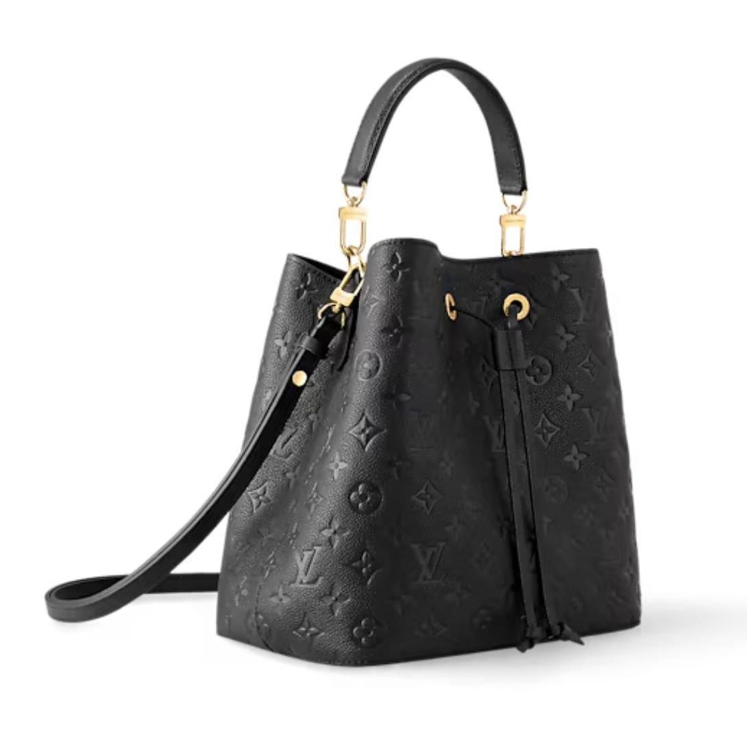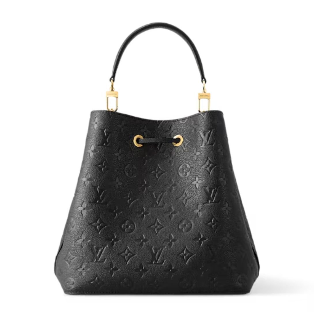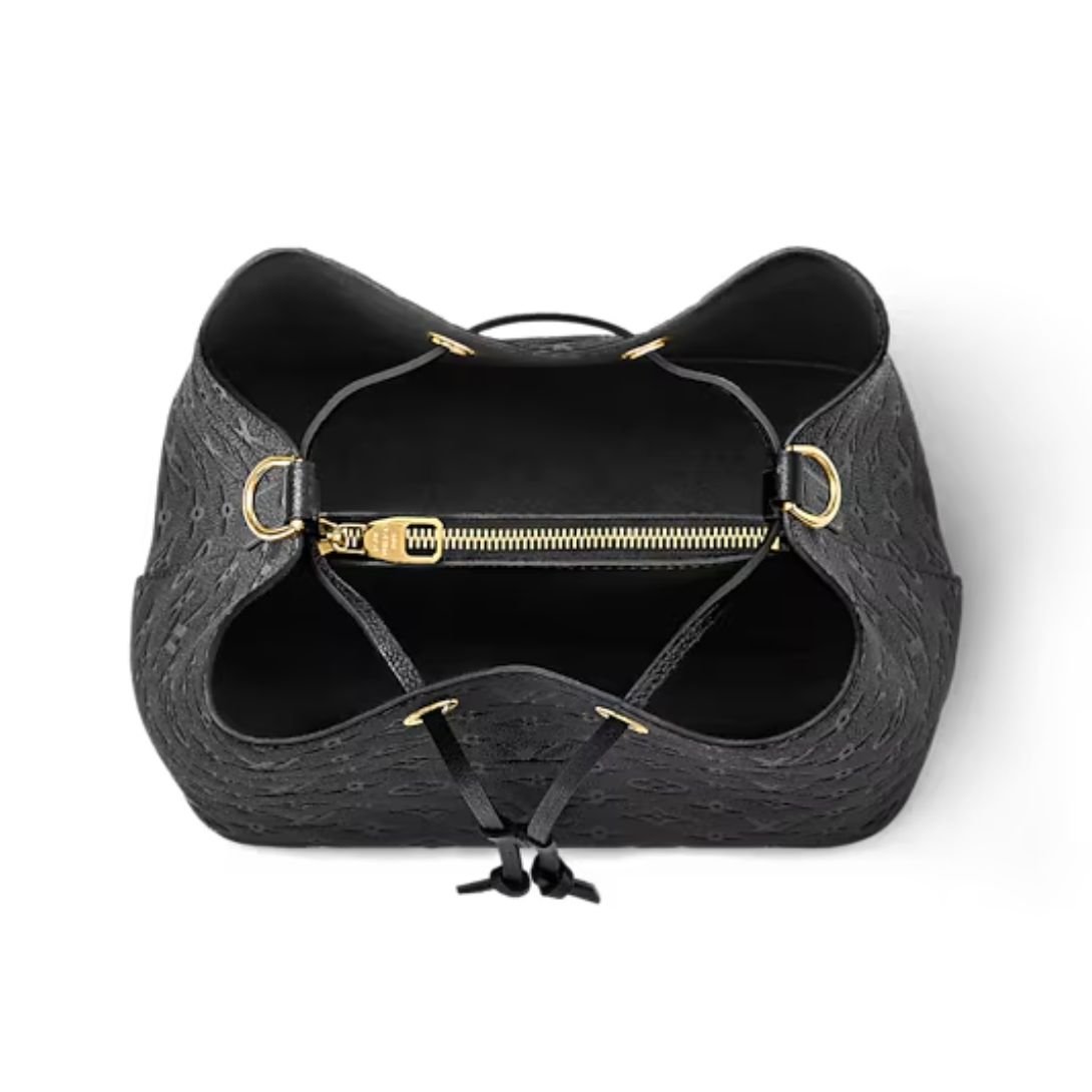 Sophisticated and effortlessly modern, the NéoNoé MM is crafted from embossed Monogram Empreinte leather in classic black, offering a timeless take on the House’s signature bucket bag. The supple grained cowhide leather is elegantly accented with gold-color hardware, including refined metal eyelets and a sleek leather drawstring closure.