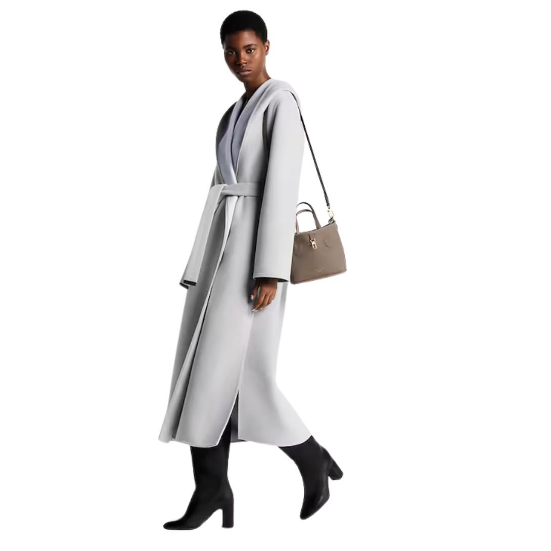 Inside, a removable zipped pouch offers flexible storage: carry it as a minimalist clutch or attach it to the exterior as an additional pocket. A hook closure secures the bag’s contents, while the roomy interior effortlessly holds your smartphone, Rosalie Coin Purse, earphones, keys, tissues, and lipstick.