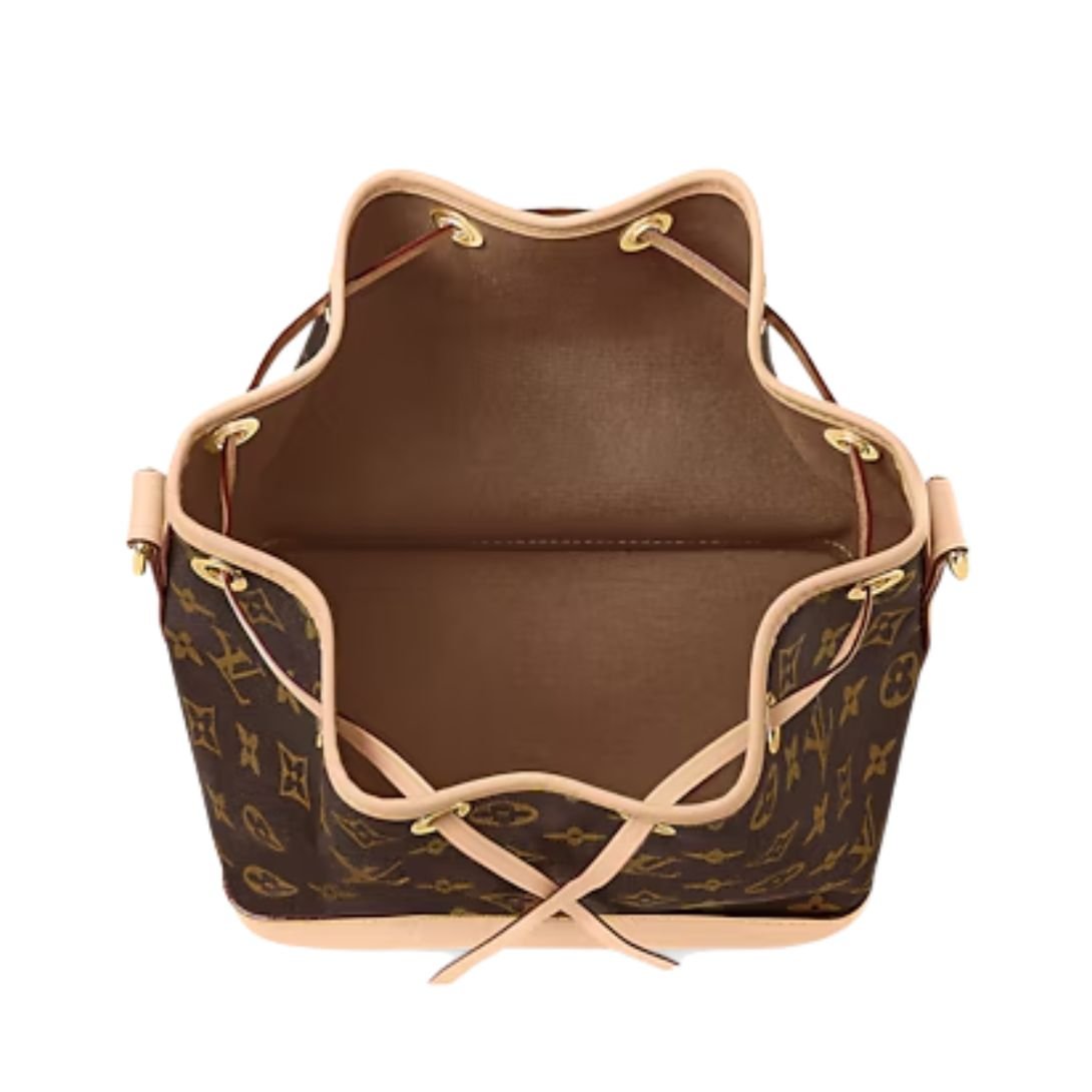 The Noé BB bucket bag, inspired by a 1932 design, was originally created at the request of a Champagne producer who needed a stylish, sturdy bag to carry five bottles of bubbly. This updated version, crafted from Monogram-coated canvas, retains the bag’s iconic shape and signature drawstring closure, bringing vintage elegance into modern life.