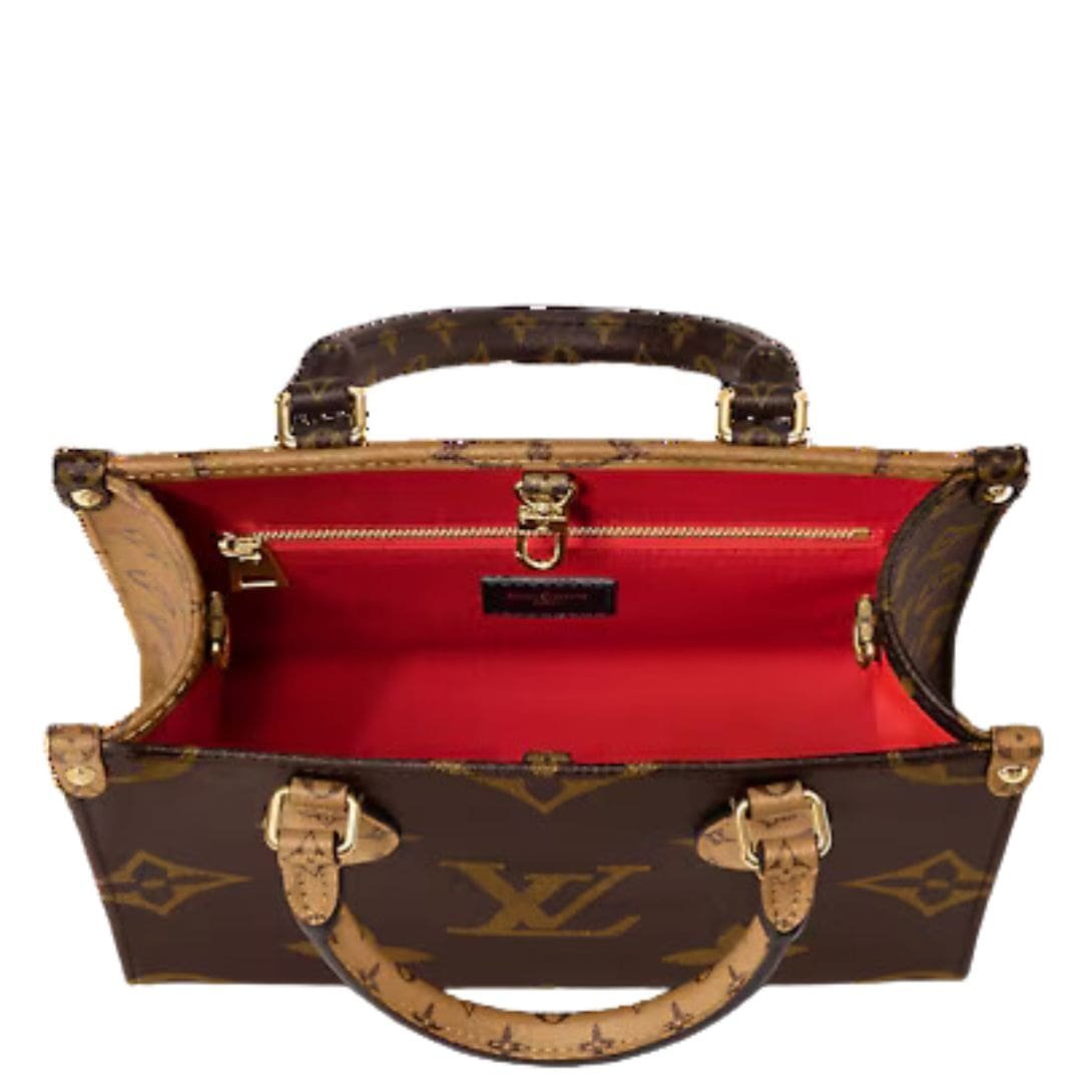 Introducing the LOUIS VUITTON ONTHEGO PM  a fusion of style and functionality designed to be your everyday essential. Crafted from a blend of Monogram and Monogram Reverse canvas, adorned with the chic Giant pattern, this tote exudes contemporary elegance. The Toron handles and signature woven jacquard strap in contrasting crème beige add a touch of sophistication.