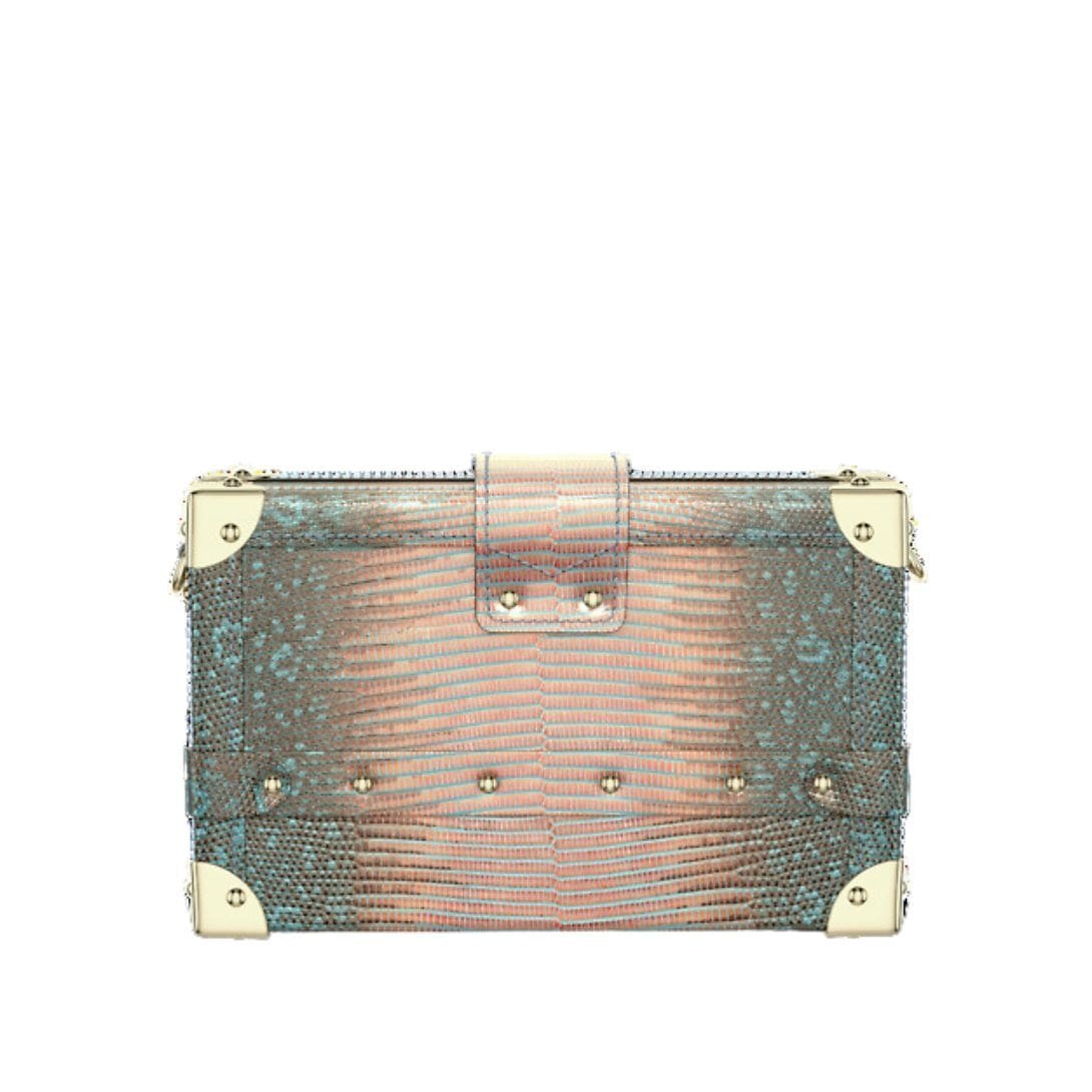 Inspired by the serene water features found in the gardens of Versailles, the Aqua Delight hue infuses this Petite Malle with a sense of tranquil sophistication. The lizard leather trim accentuates its exquisite craftsmanship, while the compact dimensions of 7.9 x 4.9 x 2 inches (length x height x width) make it an ideal companion for any occasion.
