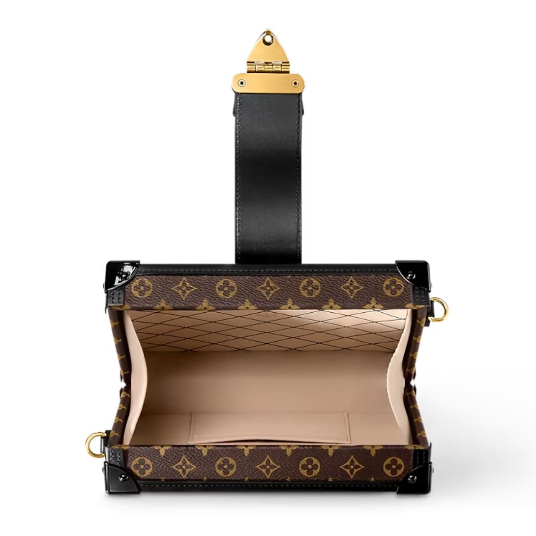 The Petite Malle handbag draws inspiration from the rich history of Louis Vuitton trunks, with its shape, iconic Monogram canvas, and gold-tone lock and fittings. The meticulous craftsmanship is further enhanced by smooth calfskin trim and a luxurious sheepskin lining featuring the classic Malletage print. This sophisticated “little trunk” effortlessly transitions from day to evening wear, and it can be carried as a clutch or worn cross-body with the adjustable strap.