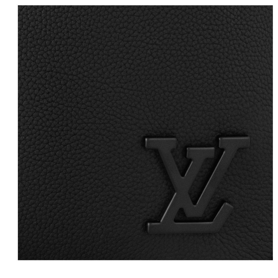 Measuring 15.4 x 11.4 x 2.4 inches, the LOUIS VUITTON PILOT BRIEFCASE exudes understated elegance in classic black, complemented by cowhide leather trim and sleek black-color hardware. The bias-cut corners on the front pocket and the tone-on-tone LV Initials subtly signify its status as part of the prestigious LV Aerogram Collection, adding a touch of sophistication to the design.