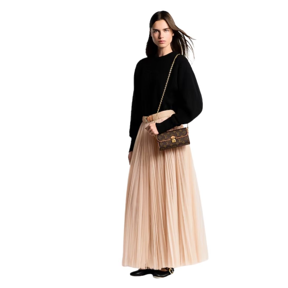 The iconic S-lock closure, a bold LV Circle charm, and the contrasting Vachetta leather trim deliver timeless Louis Vuitton codes with a modern edge. Finished in gold-tone hardware, the Camille radiates quiet luxury and confident femininity.