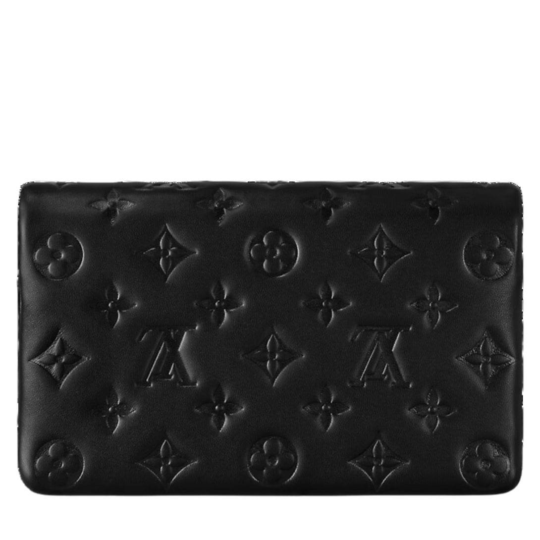 Introducing the luxurious LOUIS VUITTON POCHETTE COUSSIN, a fusion of elegance and versatility crafted for the modern sophisticate. Crafted from sumptuously soft lambskin, embossed with the iconic Monogram pattern, this exquisite pouch boasts a unique puffy, cushiony effect that exudes sophistication. Measuring 7.9 x 5.5 x 3.1 inches, its body-friendly shape ensures comfort without compromising style.