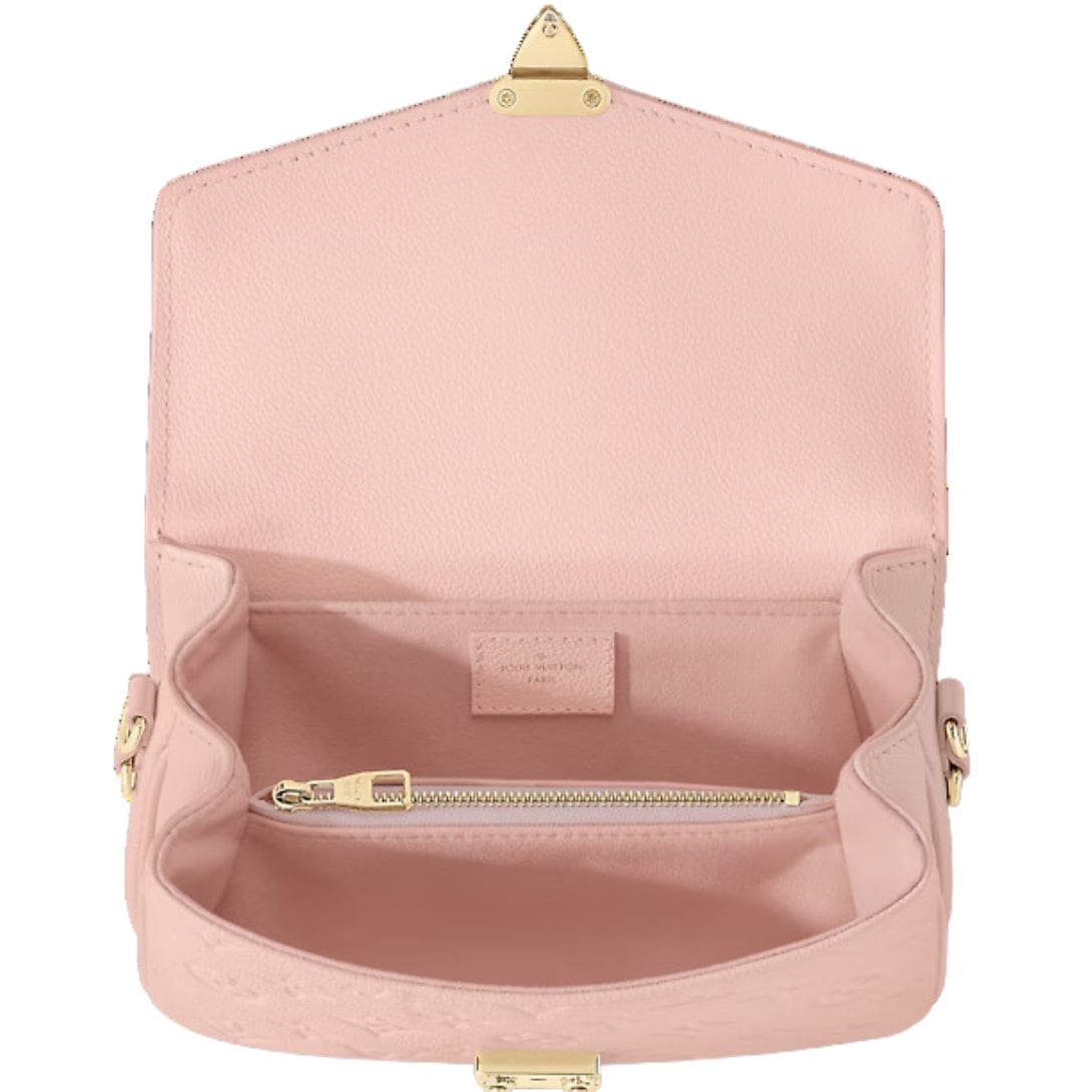 Introducing the LOUIS VUITTON POCHETTE METIS EAST WEST handbag, an exquisite blend of style and practicality, designed to elevate your everyday looks with effortless sophistication. Crafted with meticulous attention to detail, this handbag features a chic East-West silhouette crafted from pastel-toned Monogram Empreinte leather, showcasing the iconic Monogram motif embossed into the luxurious cowhide.