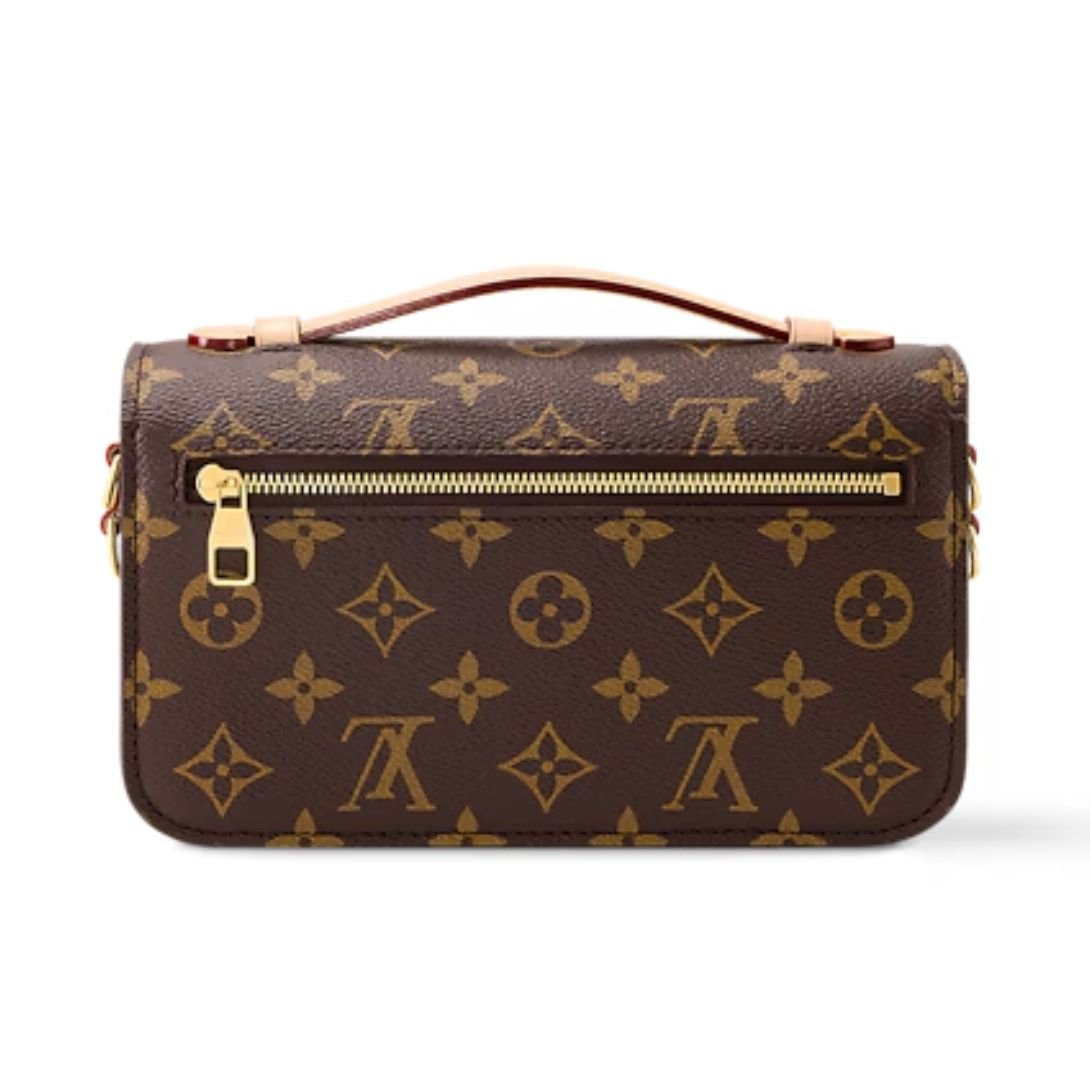 The Pochette Métis East West bag seamlessly blends Louis Vuitton’s iconic Monogram canvas with modern, contemporary details. Featuring natural cowhide-leather trim and the signature S-lock closure, this bag is both stylish and functional. A fashionable gold-tone chain adds a trendy short-shoulder carry option.