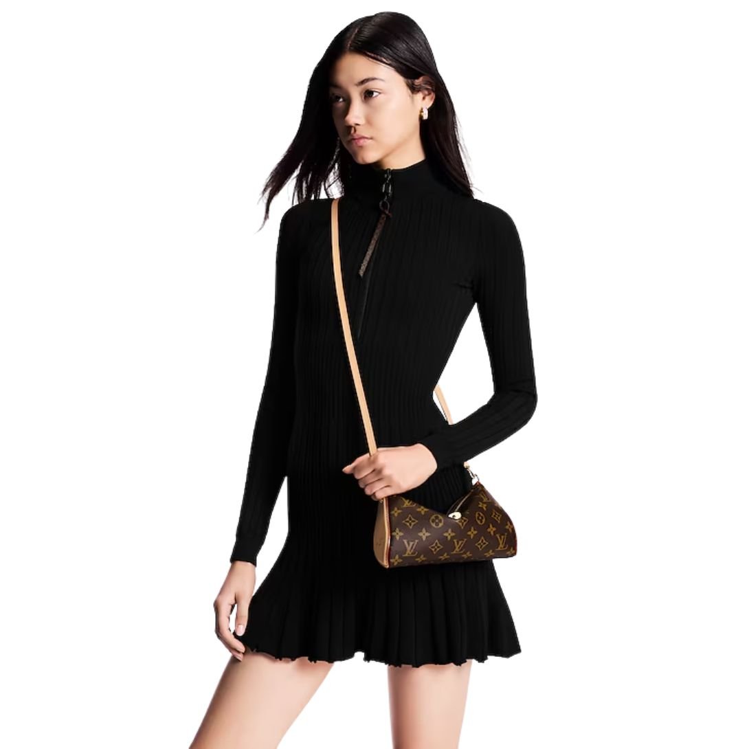 The Pochette Tirette in Monogram-coated canvas is a chic, small bag that made its debut at Louis Vuitton’s Spring-Summer 2024 show. It features a slouchy, on-trend shape, with natural cowhide leather trim on the sides that echoes the ogive shape of the House’s signature zip pulls, adding a touch of heritage to its contemporary design.