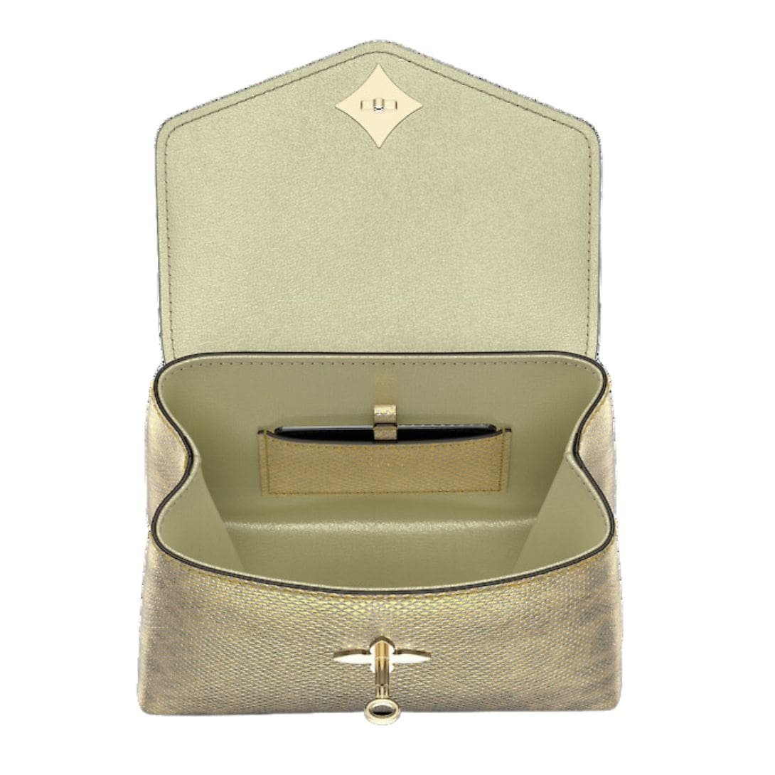 Inspired by the opulent gildings that adorn the decorative elements of Versailles’ Castle, the Golden Leaves hue of the karung leather finish exudes regal splendor and timeless allure. Enhanced by karung leather trim and light gold color hardware, this handbag is a symbol of refined luxury.