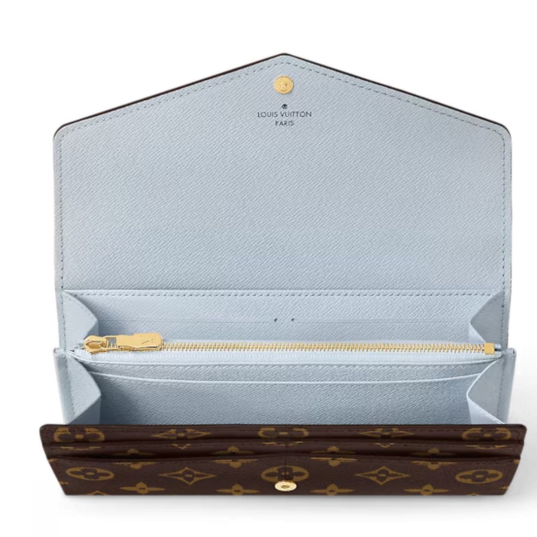 The interior of the LOUIS VUITTON SARAH WALLET is thoughtfully organized to keep your essentials in order. It includes: