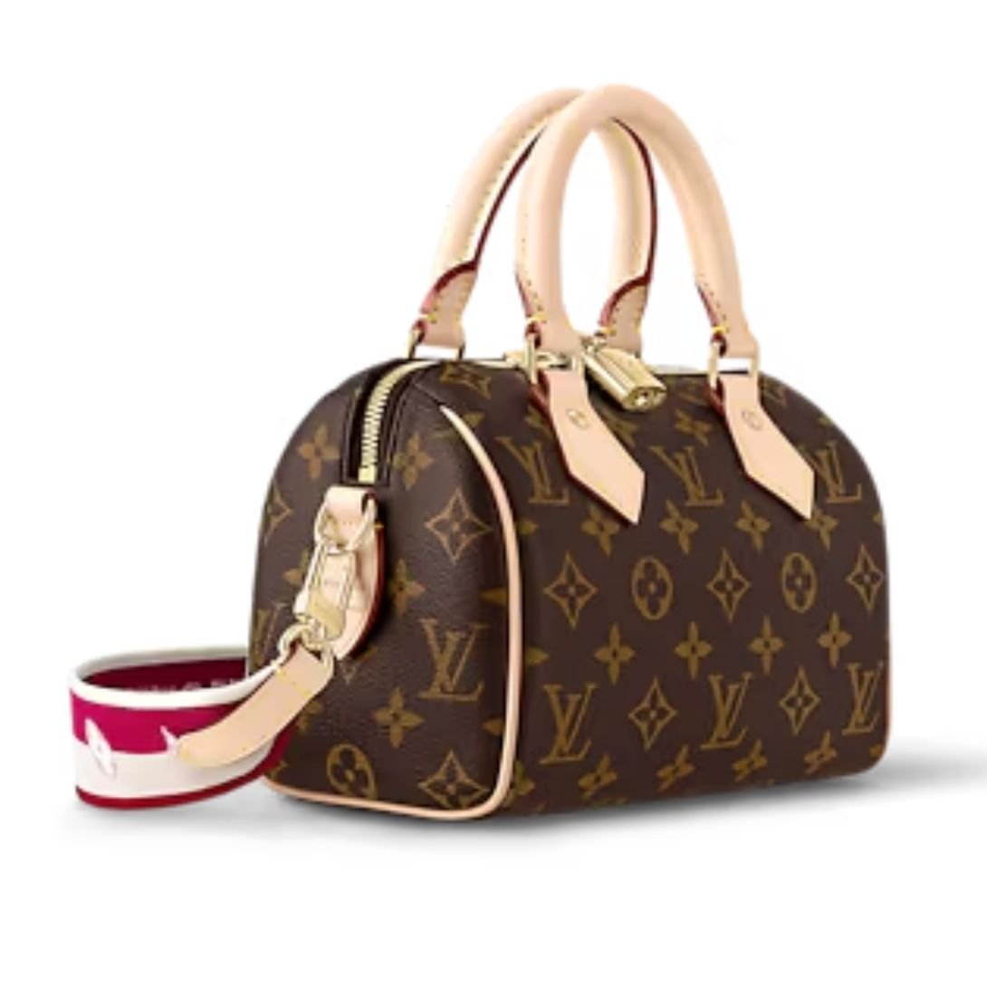 Despite its smaller dimensions—20 x 13 x 12 cm—the Speedy Bandoulière 20 offers ample space for your daily essentials. Inside, a flat pocket helps organize smaller items, while the bold fuchsia textile lining adds a playful pop of color. The signature padlock completes the look, nodding to the brand’s heritage.