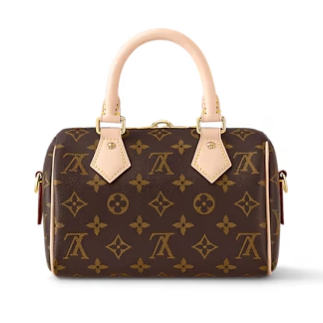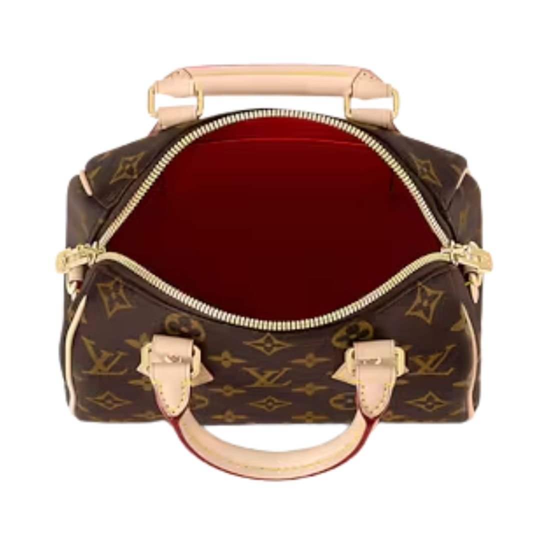 The Speedy Bandoulière 20 is a charming, compact reinterpretation of Louis Vuitton’s historic Speedy travel bag. Expertly crafted from classic Monogram coated canvas, this stylish mini bag retains the elegance of the original, enhanced with natural cowhide-leather trim and rich gold-tone hardware.