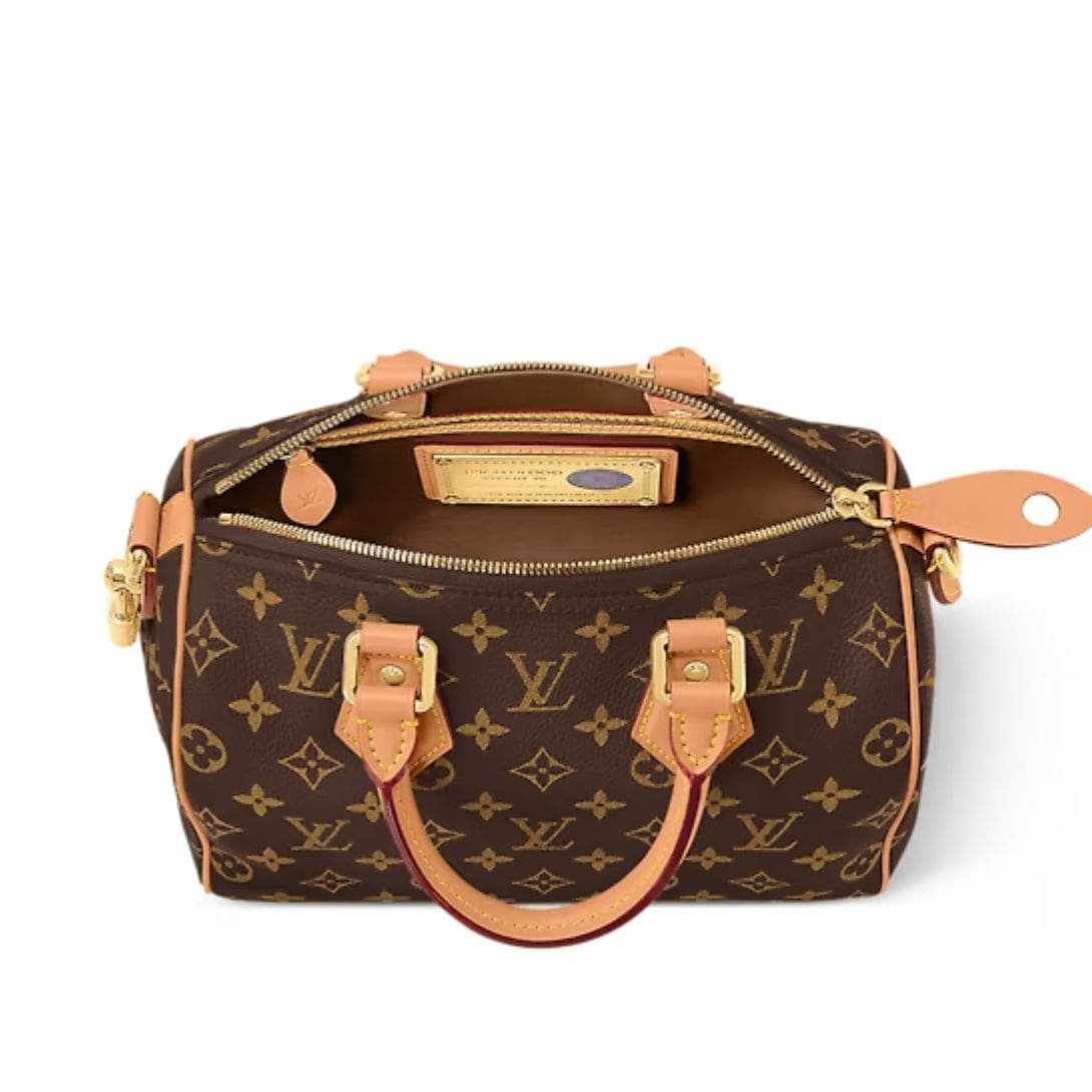 Measuring 9.8 x 5.9 x 5.9 inches (length x height x width), this compact yet spacious bag is perfect for those who appreciate refined elegance. The natural cowhide-leather trim accentuates its luxurious appeal, while the gold-color hardware adds a touch of opulence. Inside, the lambskin lining elevates the bag’s interior, which features a main compartment secured with a lock, an inside zipped pocket, a removable leather pouch, a name tag, and a key bell for organizational convenience. LOUIS VUITTON SPEEDY P9 BANDOULIERE 25Y Crafted with sustainability in mind, the calfskin used in this product is sourced from tanneries audited and certified by the Leather Working Group, ensuring the highest environmental standards are met.