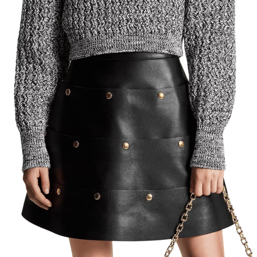 LOUIS VUITTON TIERED SNAP BUTTON LEATHER SKIRT