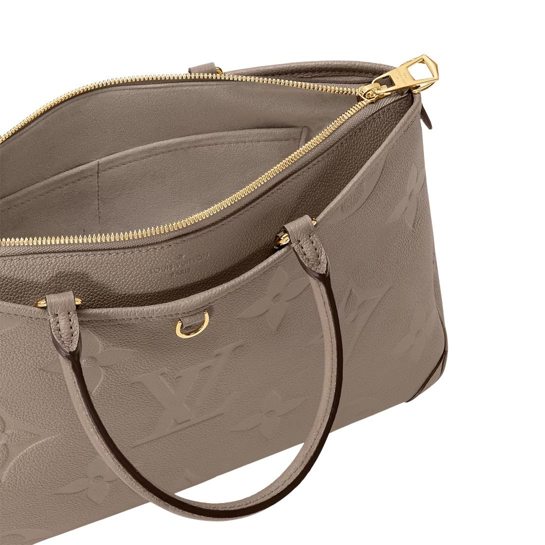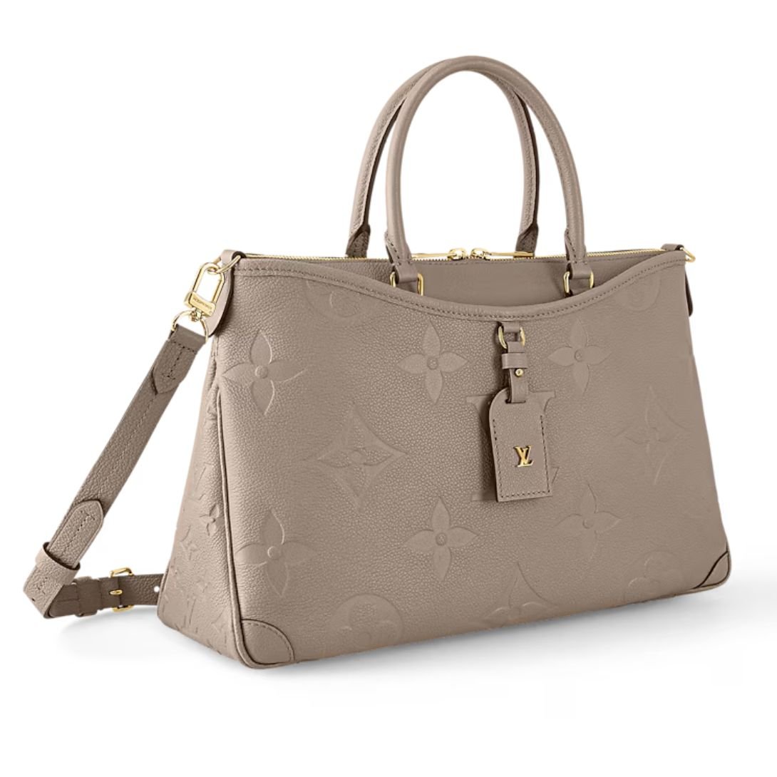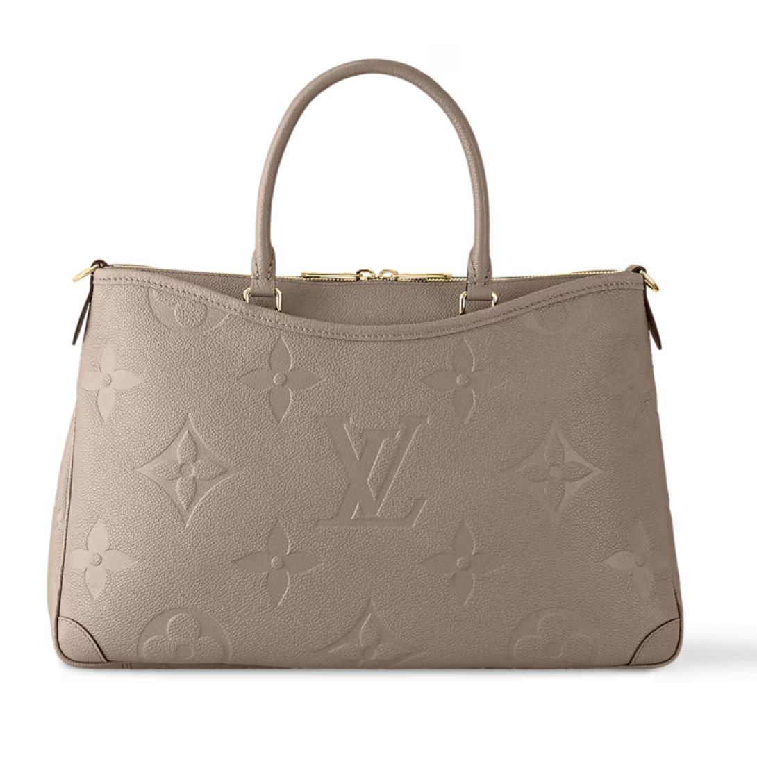 The Trianon MM tote is a refined blend of luxury and utility, crafted from Monogram Empreinte leather in an elegant Tourterelle Gray. The embossed Giant Monogram pattern brings a bold yet sophisticated touch to this everyday companion, while gold-color hardware adds a hint of glamour.