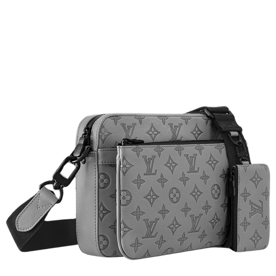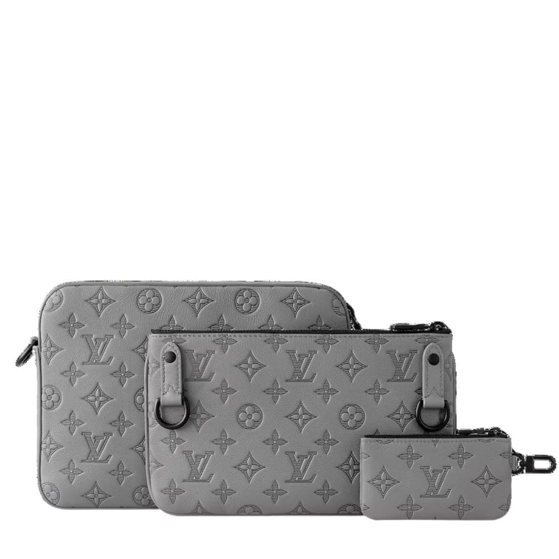 Presenting the LOUIS VUITTON TRIO MESSENGER a versatile and stylish hybrid bag that seamlessly blends functionality with fashion. Crafted from exquisite Monogram-embossed calf leather, this bag exudes sophistication in every detail. Measuring 9.8 x 7.3 x 2.8 inches, its sleek silhouette makes it perfect for both everyday wear and special occasions.