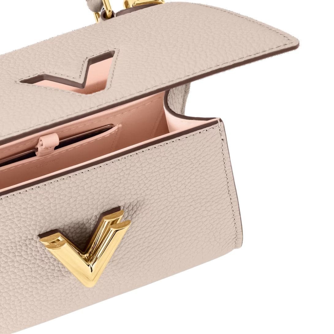 Measuring 7.9 x 5.1 x 3.5 inches (length x height x width), the LOUIS VUITTON TWIST ONE HANDLE BB is as versatile as it is stylish, offering cross-body, shoulder, and hand-carry options to suit any occasion. Its interior is lined with cowhide leather in a contrasting color, adding a discreet touch of elegance to the design.