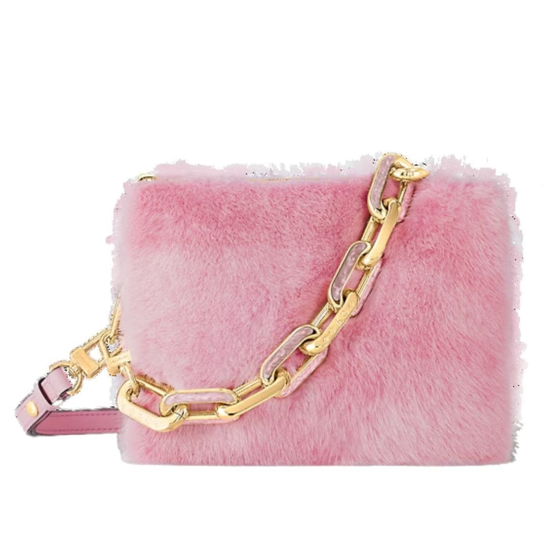 Lined with sumptuous goatskin and adorned with the iconic LV twist-lock, the LOUIS VUITTON TWIST PM is more spacious than it appears, thanks to its cleverly designed “wave” base. The sliding chain, featuring a python leather pad, offers versatility in styling, allowing it to be worn effortlessly on the shoulder or across the body.