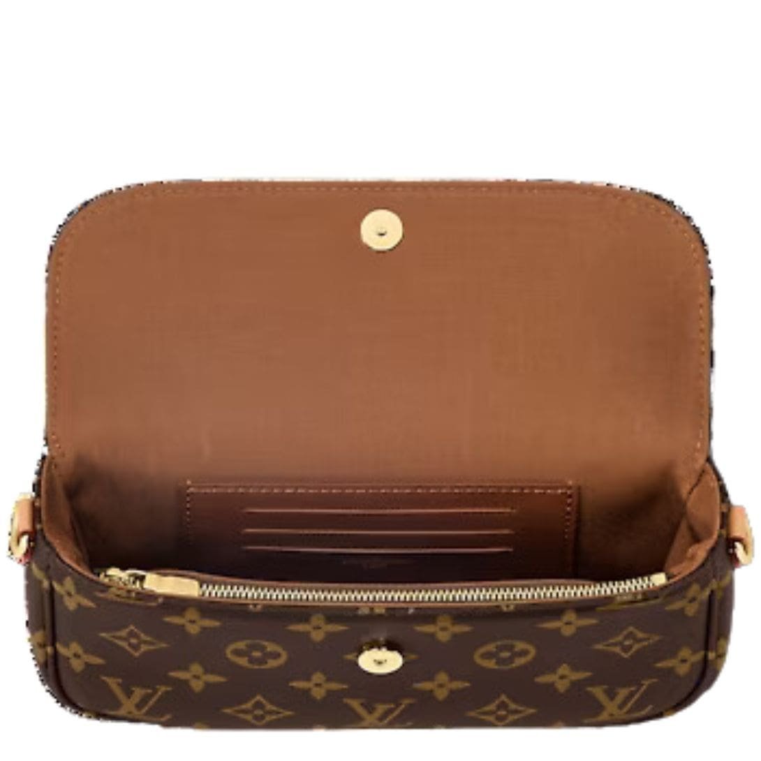Introducing the LOUIS VUITTON WALLET ON CHAIN IVY bag, a modern reinterpretation inspired by the iconic Sac Recoleta handbag from the 2000s. Crafted from luxurious Monogram canvas, this versatile accessory combines timeless style with contemporary functionality. The removable gold-color chain allows for short-shoulder carry, while the adjustable and detachable natural leather strap enables cross-body and long-shoulder carry, adapting effortlessly to your preferred style.